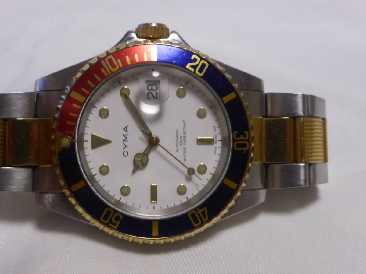 希少☆CYMA☆シーマ 自動巻き ペプシベゼル コンビ メンズ 腕時計☆