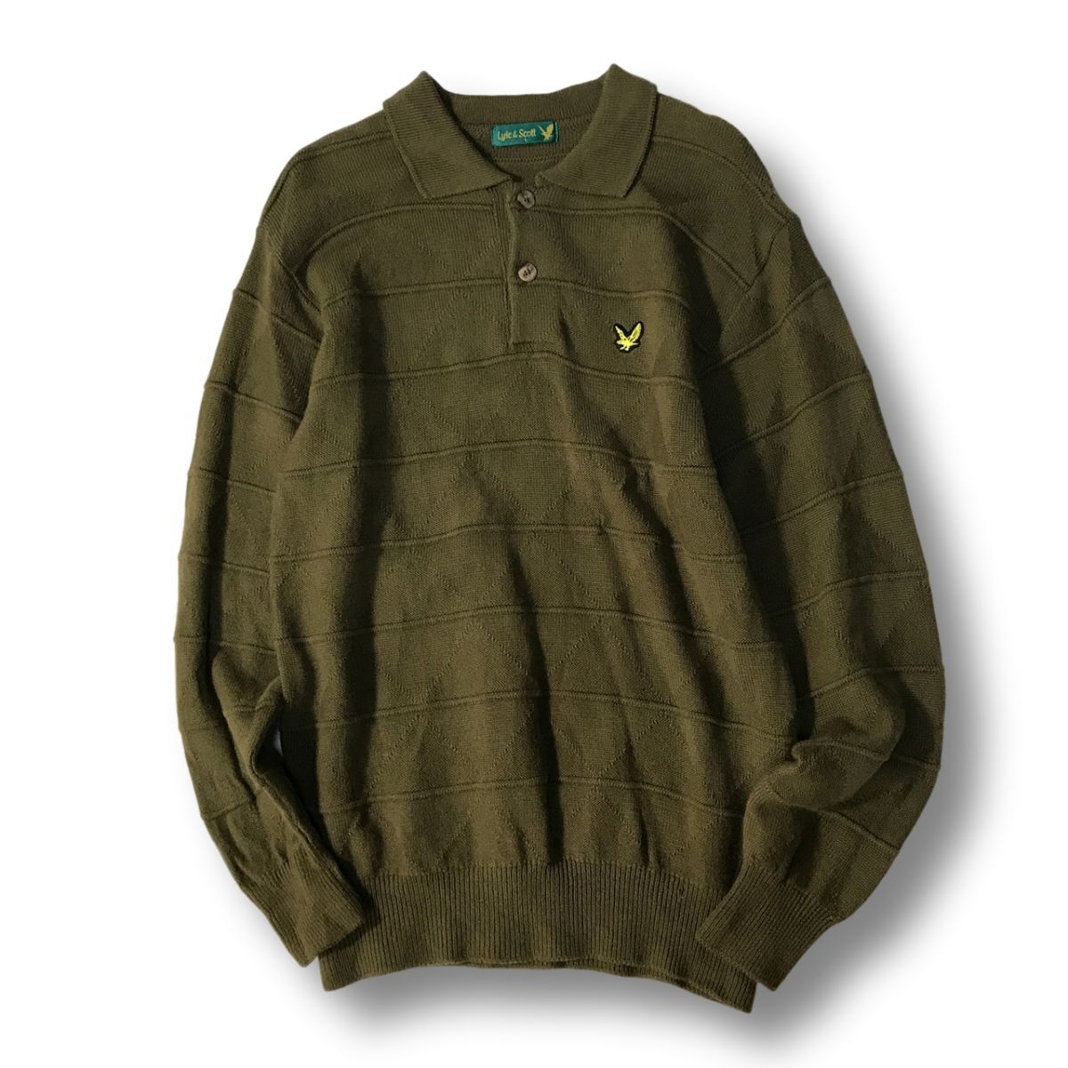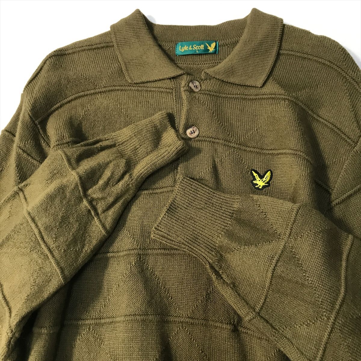 《オススメ◎》Lyle&Scott ライルアンドスコット★ウール*ワンポイント*長袖ポロシャツ*カーキ*サイズL(MW5357)◆S80