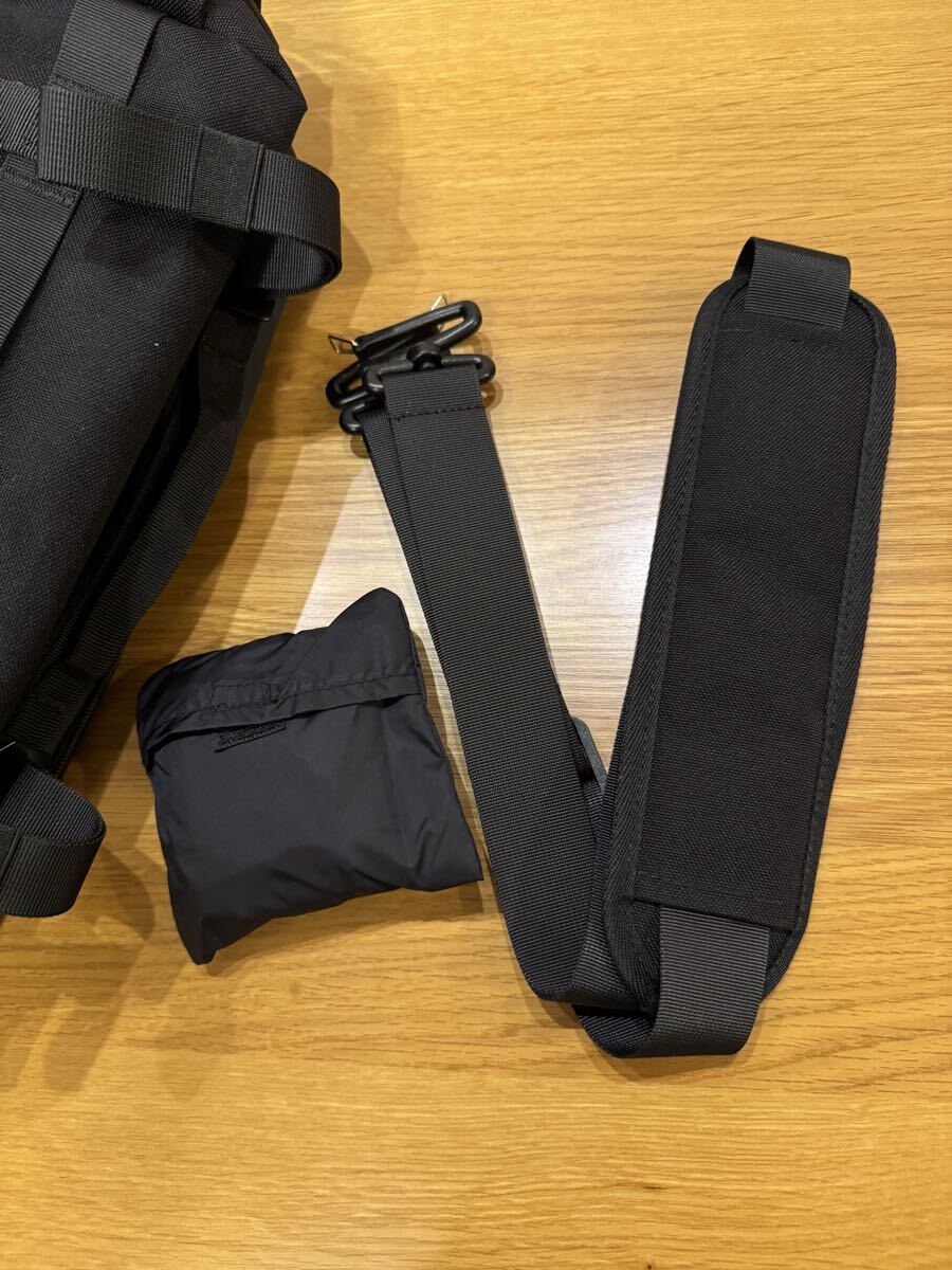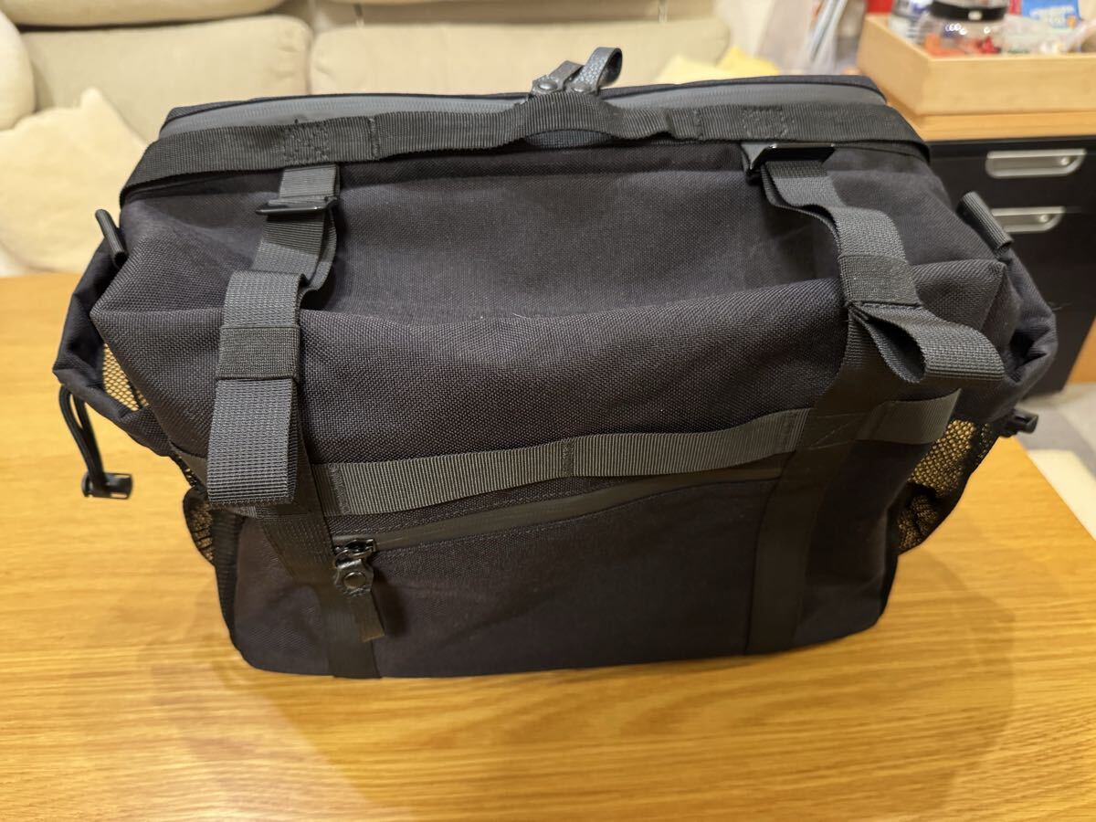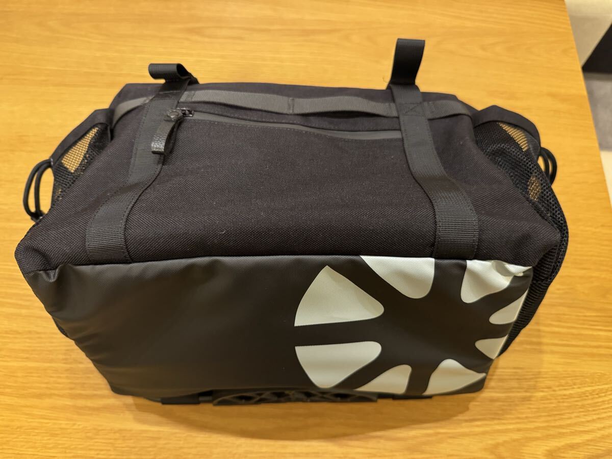 スペック:アウターメッシュポケット、止水ジップ、ショルダーストラップ、PC用パッド付インナーポケット、U-ロック用ループ、レインカバー、キャリアフレーム