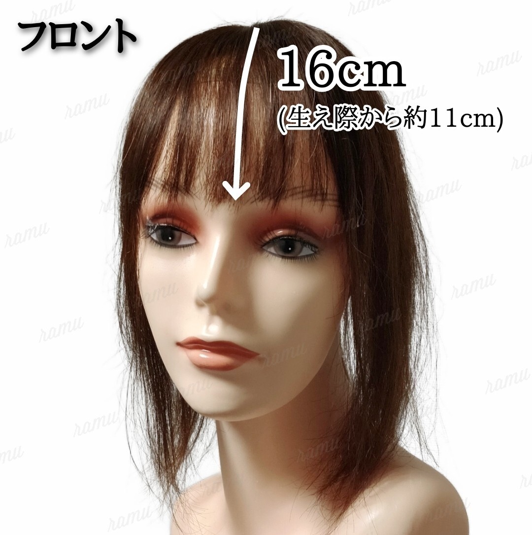 フロント:頭頂部から約16cm(生え際から約11cm)