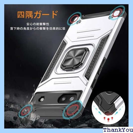 Google Pixel 6A ケース リング 耐衝撃 護 一体型 カバー 銀08004-Pixel 6a-05 190