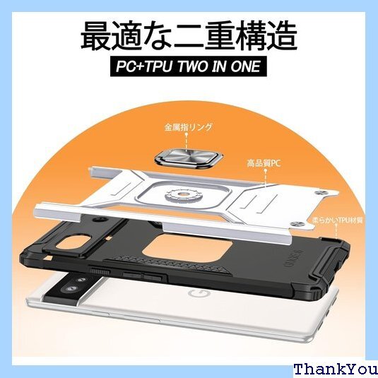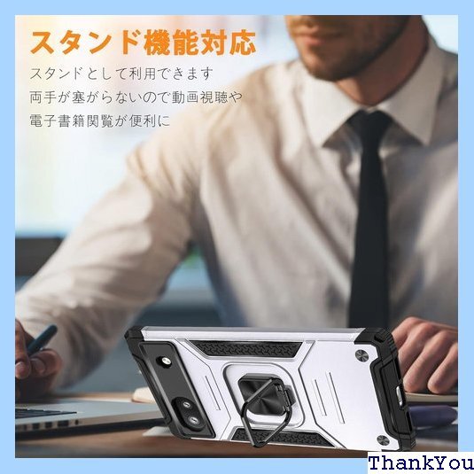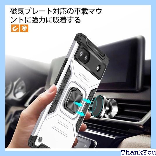 Google Pixel 6A ケース リング 耐衝撃 カバー 薄型 tpu 米軍MIL規格 衝撃吸収 指紋防止TPU+PC材質 滑り止め リング付き車載ホルダー対応 落下防止 スタンド機能 傷つけ防止 全面保護 一体型 カバー 銀08004-Pixel 6a-05 190