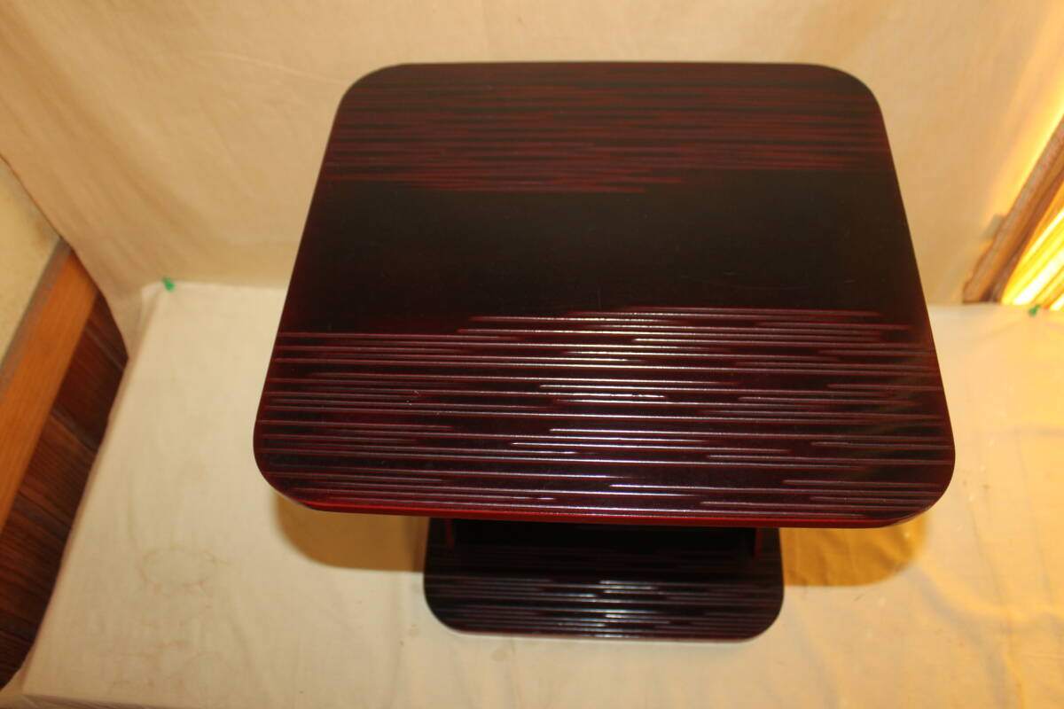商品説明 寸法:高さ35.7cm、タテ36.4cm、ヨコ33cm。 組立式です。 板の上面はヘギ目をなって、表千家家元即中斎好写の小四方棚です。 地板に少し小当りがありますがヒビ・カケなど大きな傷みはありません。 全体的状態良い方です。 付属品:紙箱。 ※※※ご入札の際には説明・画像をご確認頂けますようお願い致します。 ★当方、古いものを主体として出品させて頂いております。 点検は致しておりますが汚れや傷等の見落としがある場合がございます。 ご了承の上よろしくお願い致します。 ★発送詳細 ・佐川急便の予定です。 ★支払方法 ・Yahoo!かんたん決済 他にも色々出品しています。よろしかったらご覧になってください。