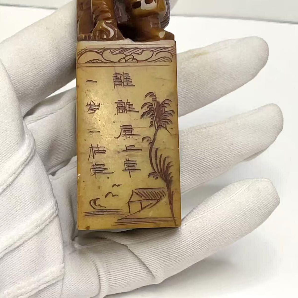 古印材 時代物 離離原上草 一一枯栄 中国美術 書道 篆刻 印鑑 印材 遊印 落款印 検:寿山石/峨眉石/巴林石/田黄石/鶏血石 唐物 古玩