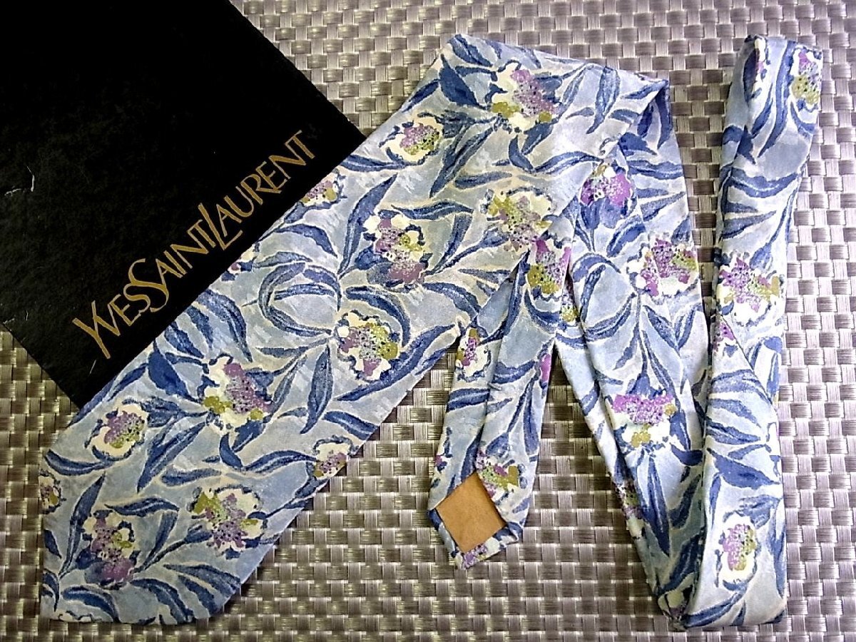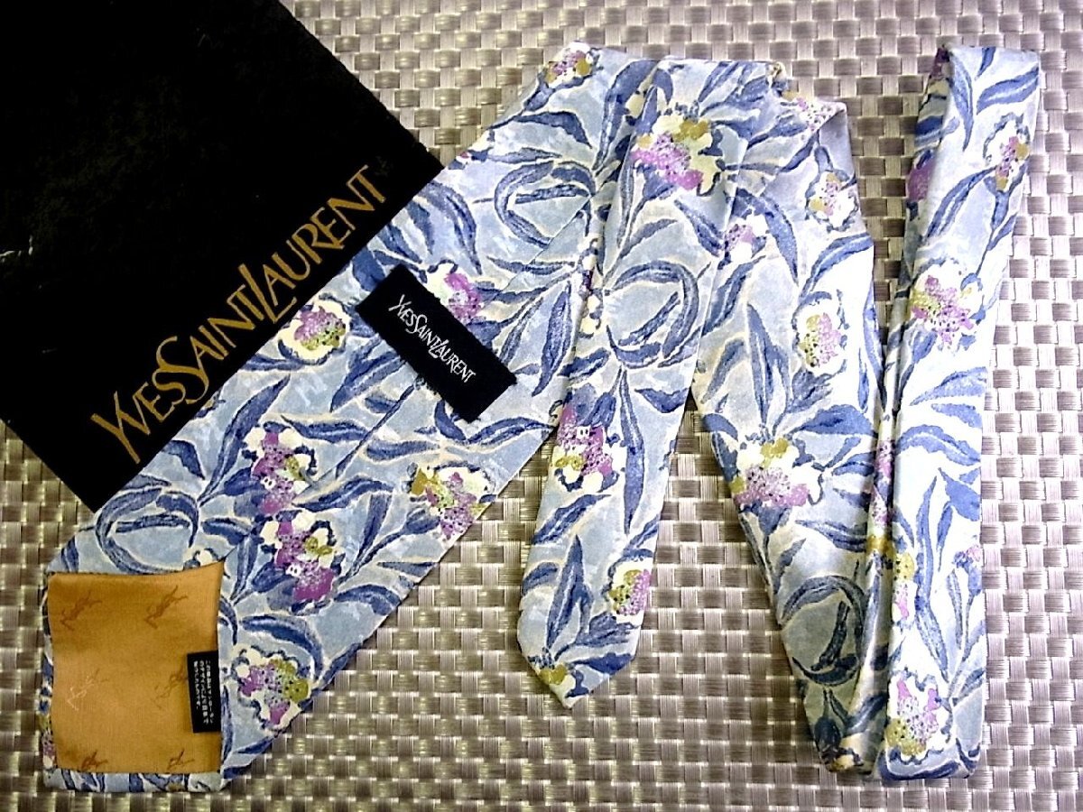 【在庫処分セール】●特売●FK9762W●サンローラン【花 葉っぱ 植物 柄】ネクタイ●
