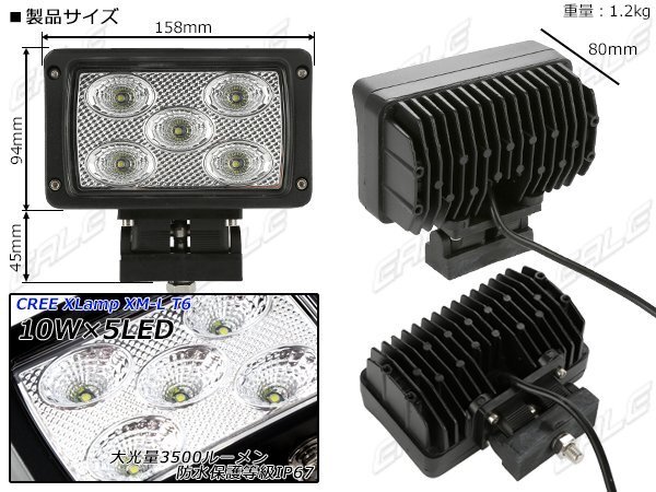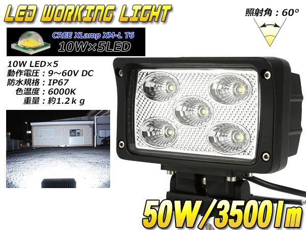 CREE 50W 3500lm LEDワークライト 作業灯 防水IP67 12V24V P-136