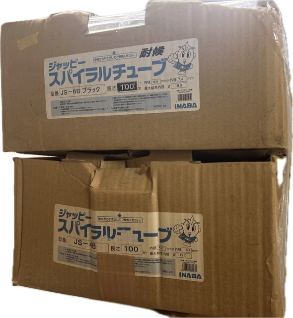 ▽【2箱セット】ジャッピー(JAPPY) スパイラルチューブ JS-4B (100M) 内径4.0 黒 / JS-6B (100M) 内径6.0 黒