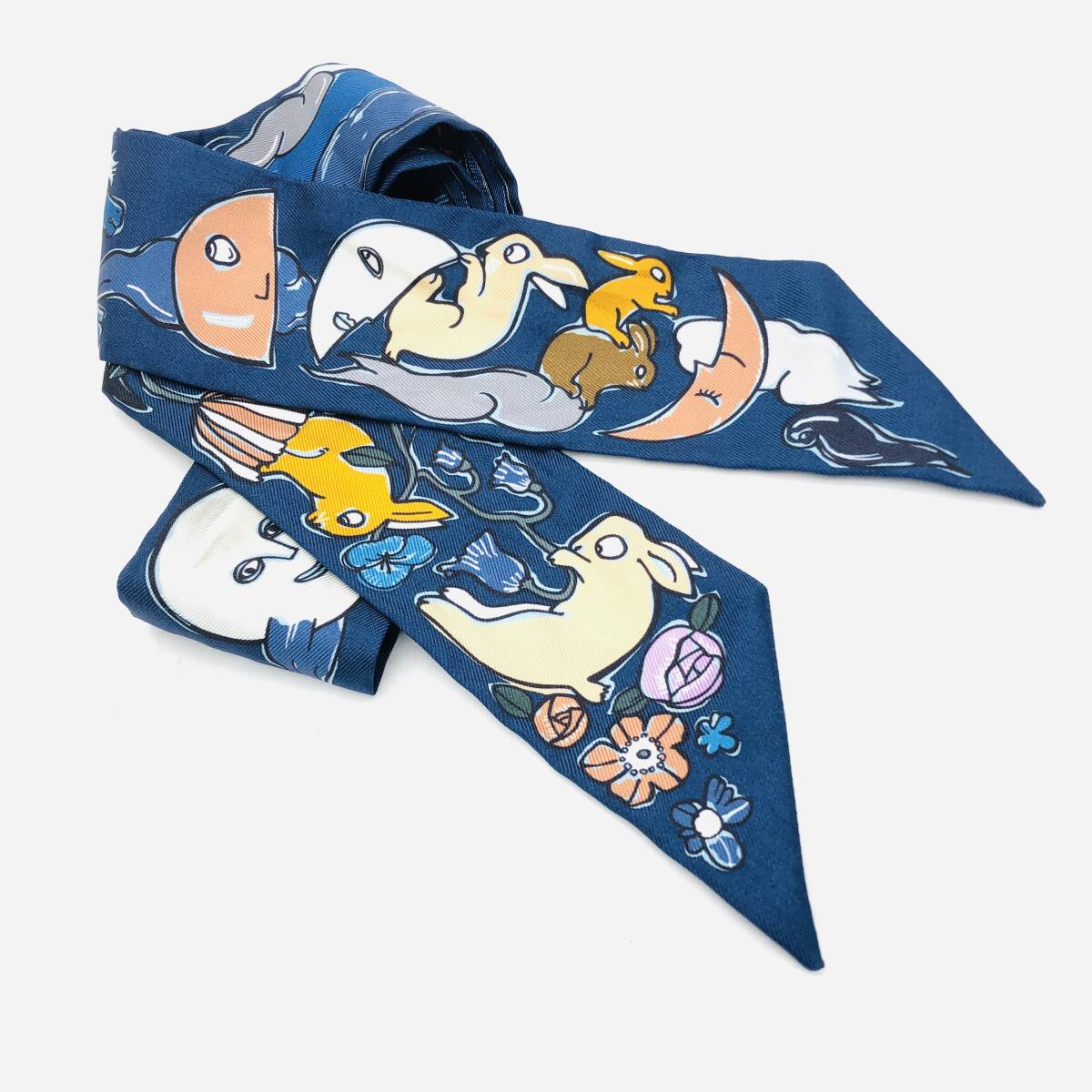 | 【保管品】Hermes エルメス TWILLY ツイリー Mille et Un Lapins 千と一のウサギ スカーフ シルク レディース / io-6644-sw | ||