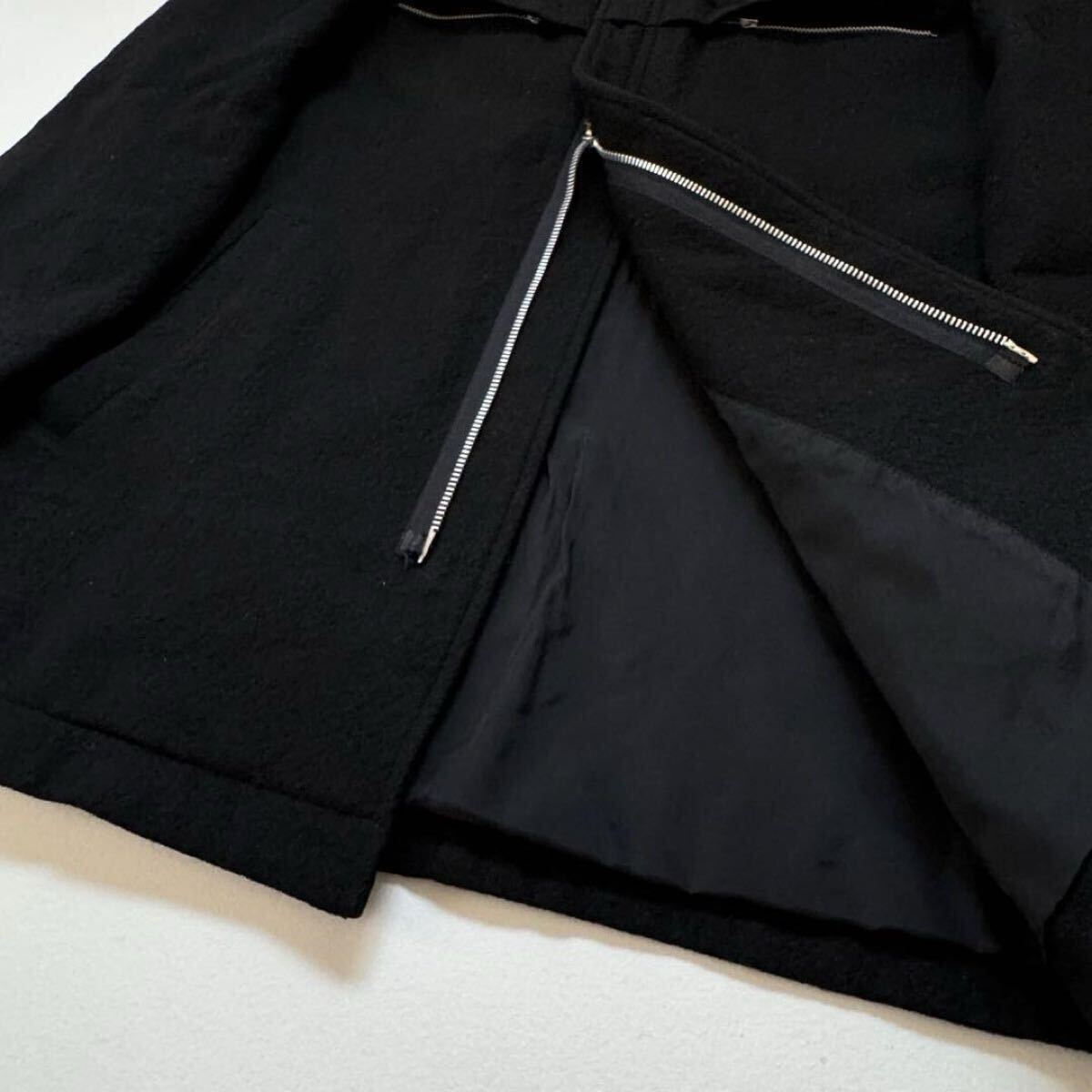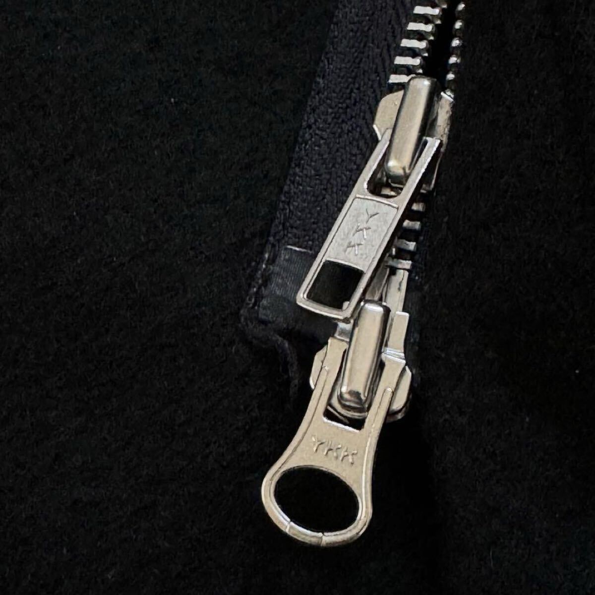 フロントはダブルジップ、胸元には隠しジップポケットなどのギミックが効いており、シンプルながらも遊び心のあるギャルソンオムらしい一着です。