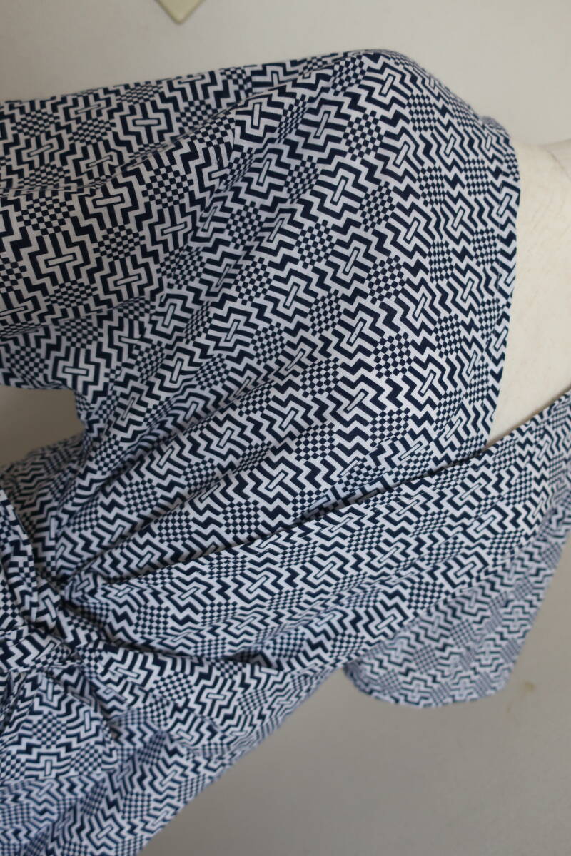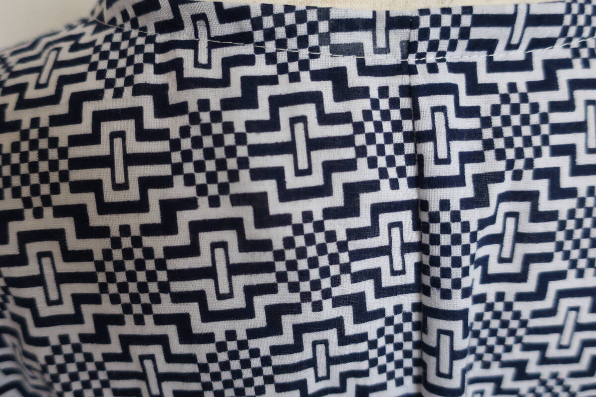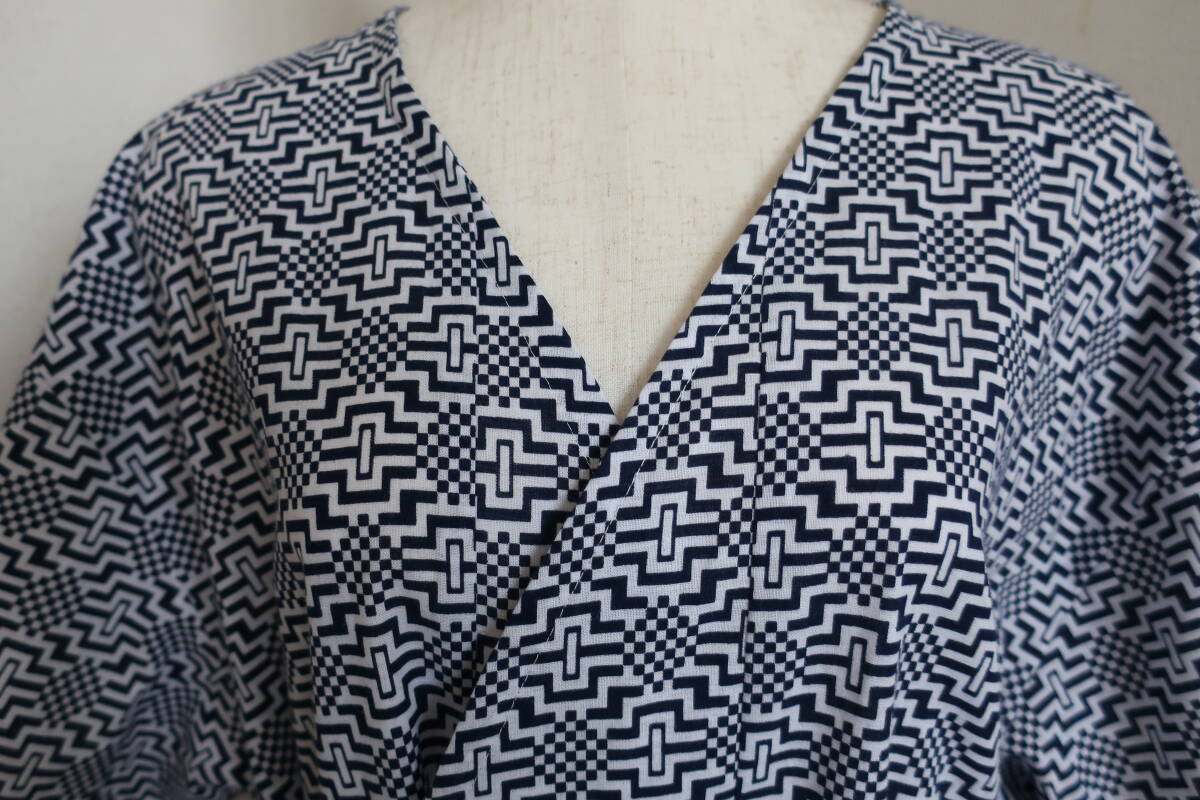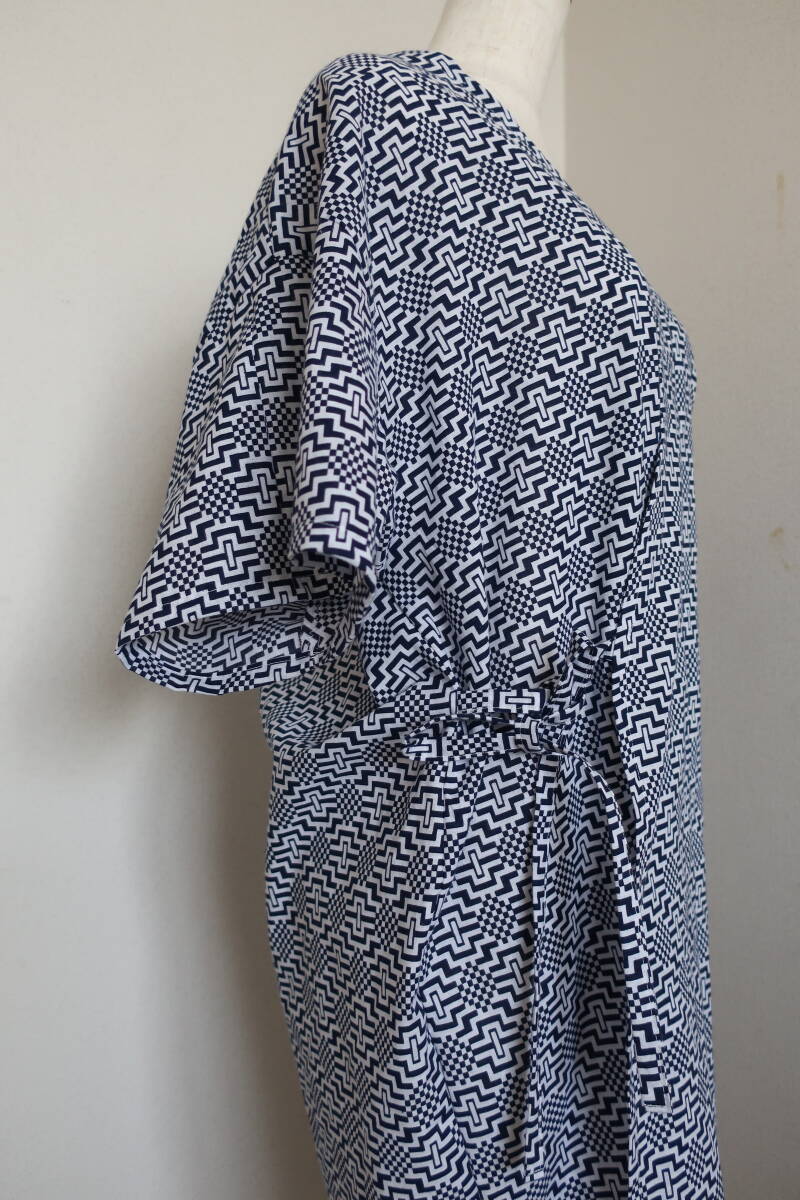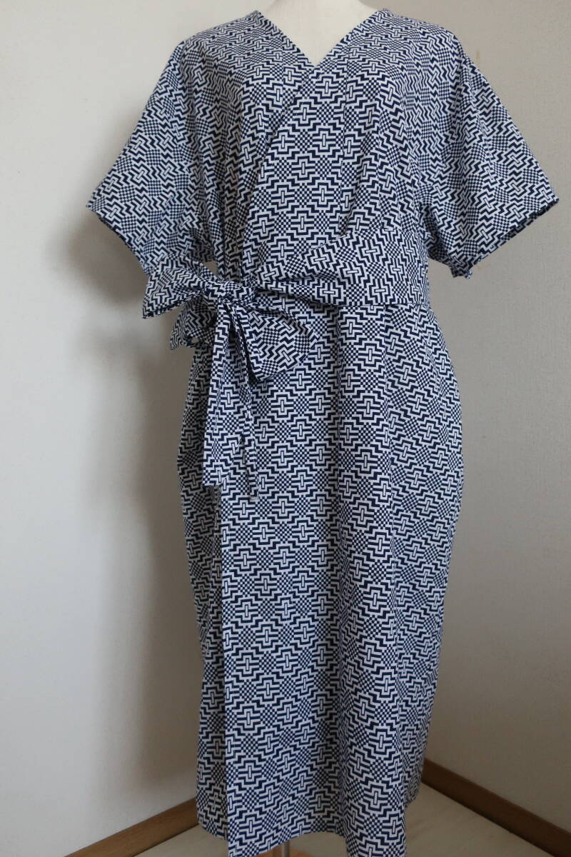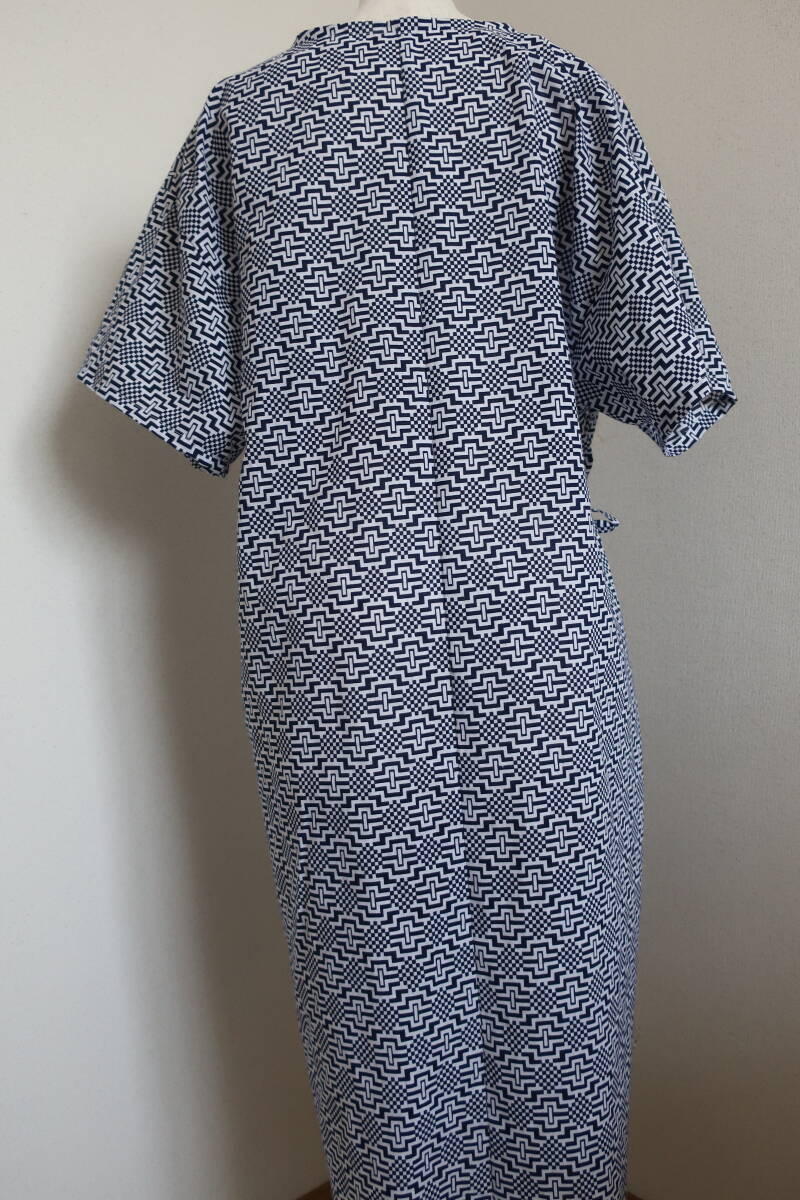 着物リメイク 浴衣地 ワンピース ガウン 綿 介護服 浴衣 紺色 ハンドメイド