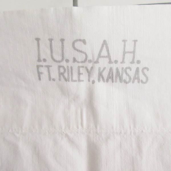アメリカから買い付けたアイテムです。 1960~1970年代頃の物と思われる、米軍のピローケースです。 出し入れ口表側にI.U.S.A.H FT.RILEY,KANSAS、出し入れ口内側にメディカルマークがプリントされていますので、リメイク生地として利用する際にもポイントになります。 シミや汚れ、黄ばみなどがあります。様々な用途でまだまだご利用いただけます。 是非ご検討ください。 |