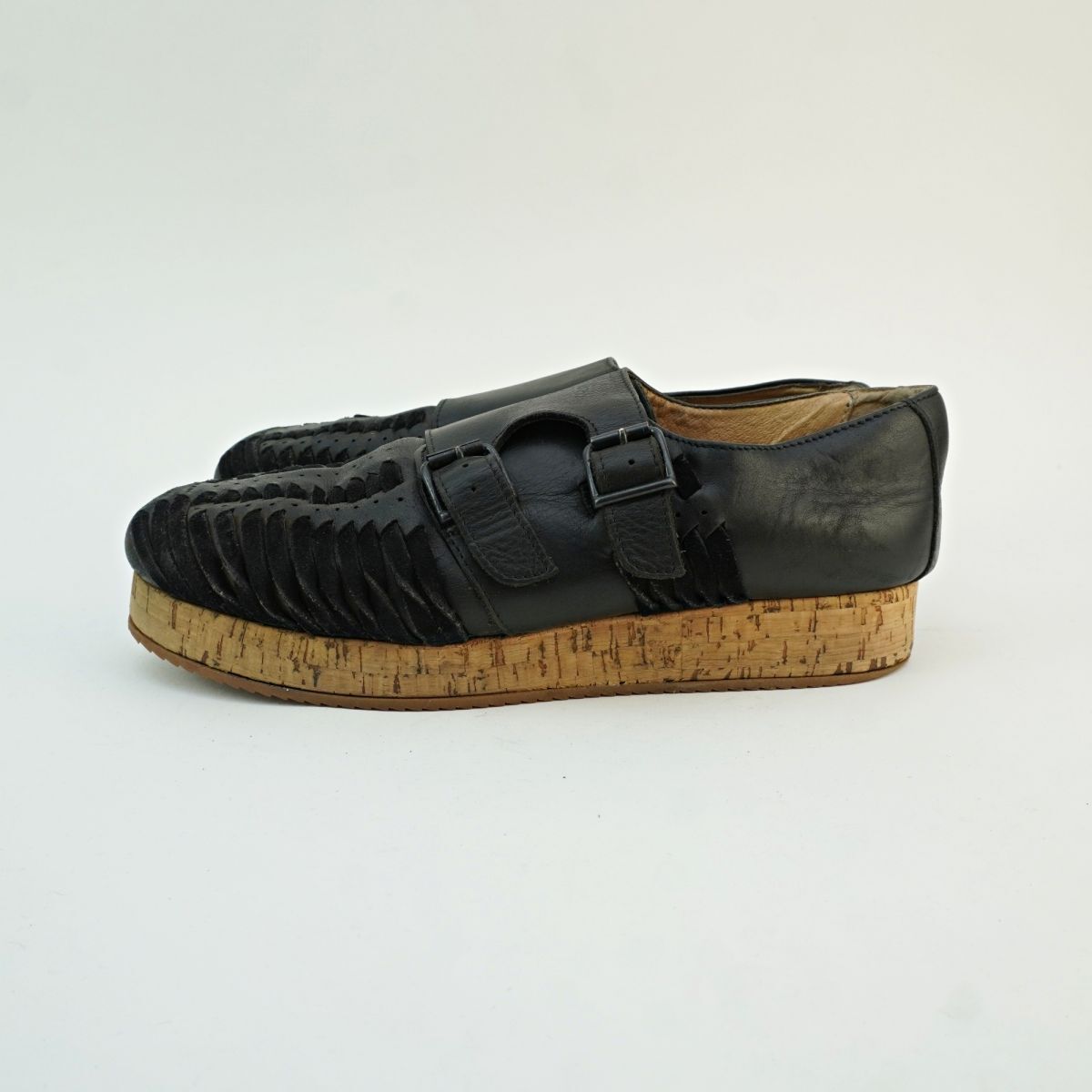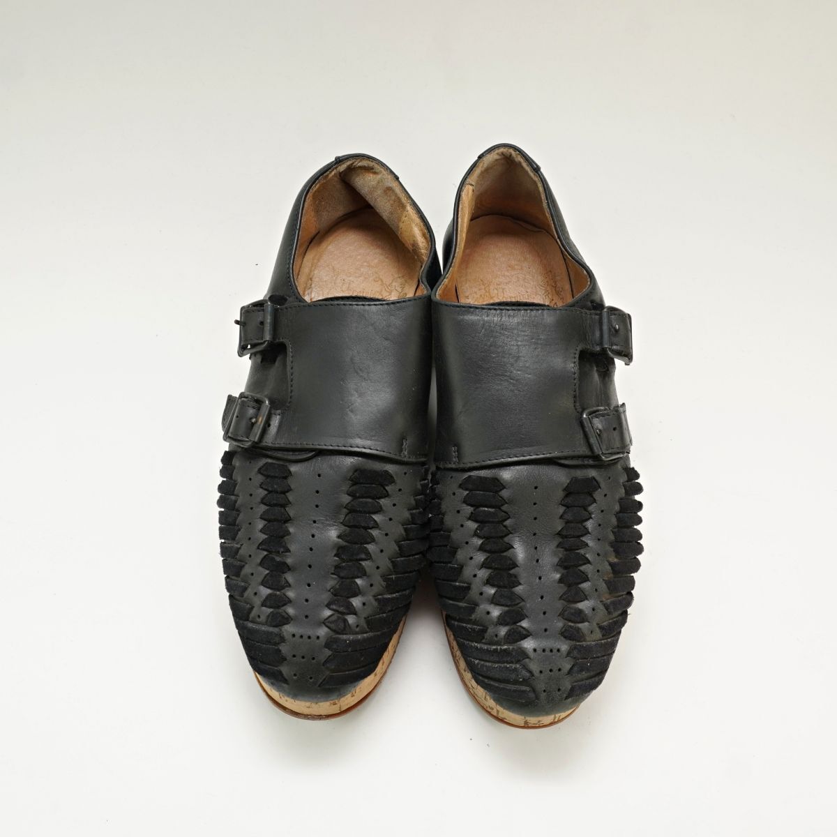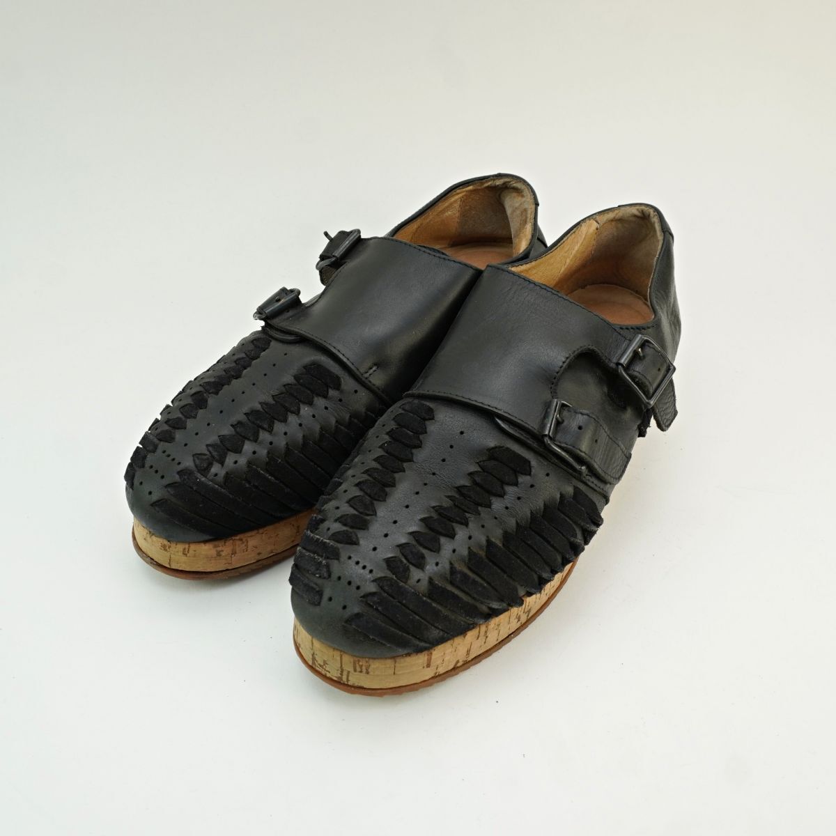 VIRGINIA ヴァージニア 43 27cm 編み込みデザイン ダブルモンクストラップシューズ 本革 コルク メンズ 黒 ブラック /WC1
