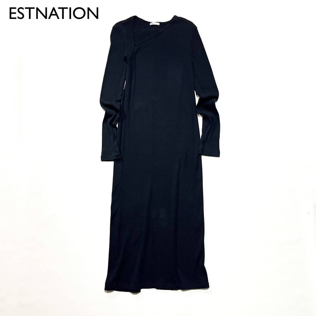 テレコバックスリットタイトワンピース ロングワンピース バックスリット 変形襟 アシンメトリーデザイン 長袖 リブニットワンピース ドレス タイトスカート 日本製 made in japan