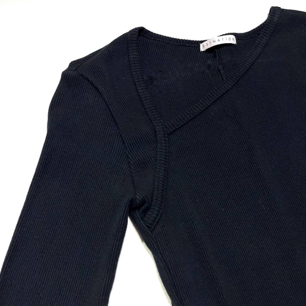 襟ぐりをアシンメトリーなVネックにしているが特徴です。