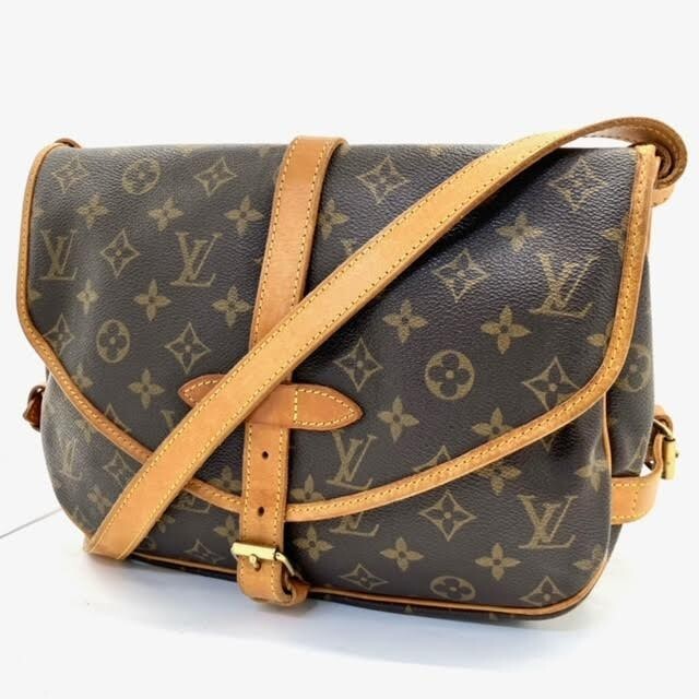 仙14【訳あり】Louis Vuitton M42256 モノグラム ソミュール 30 ショルダーバッグ ブラウン系 ルイヴィトン LV 斜め掛け クロスボディ