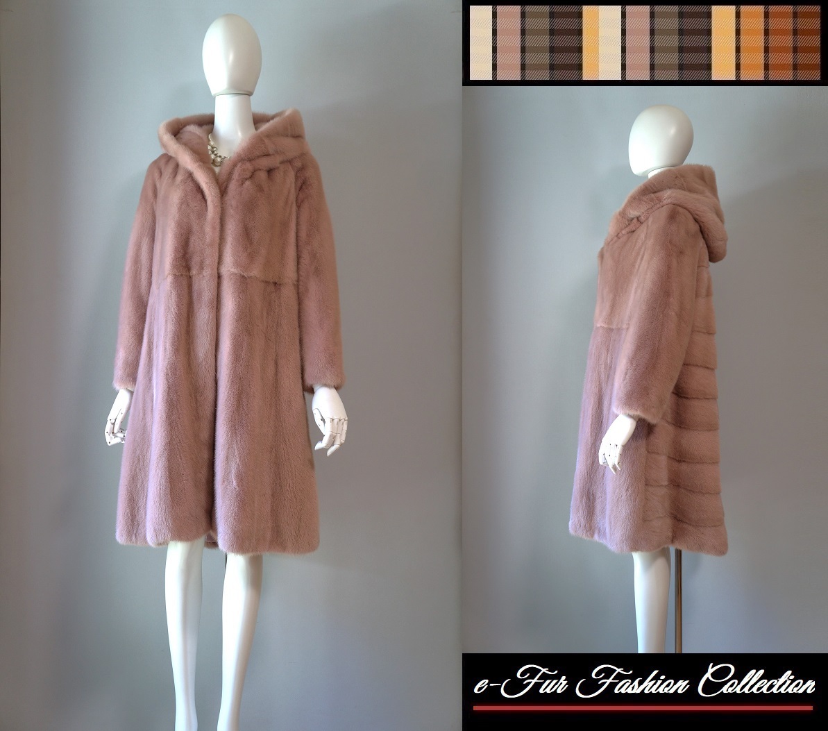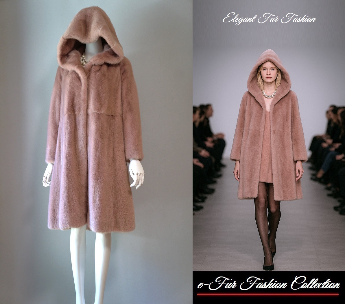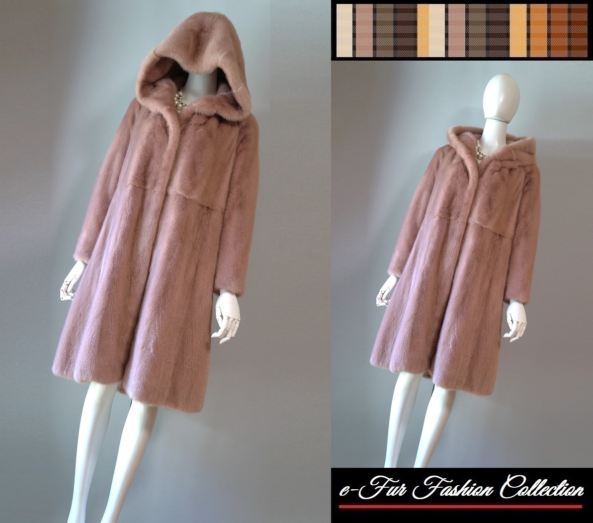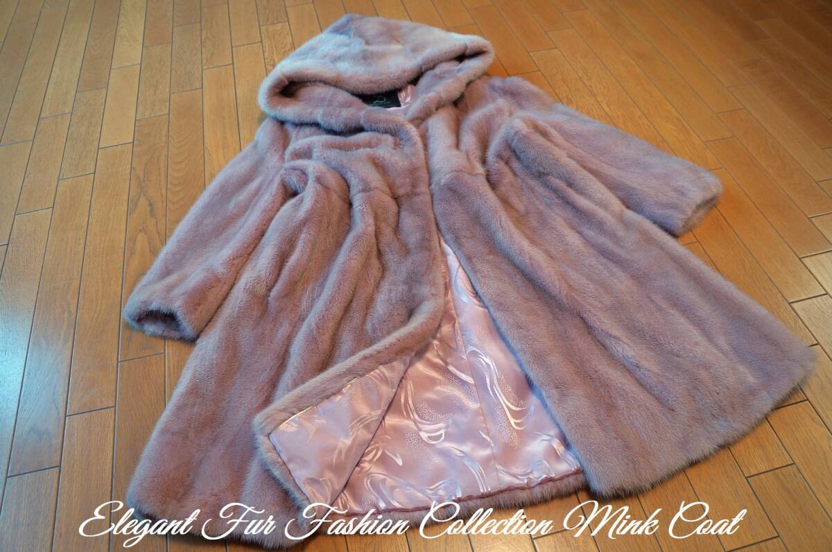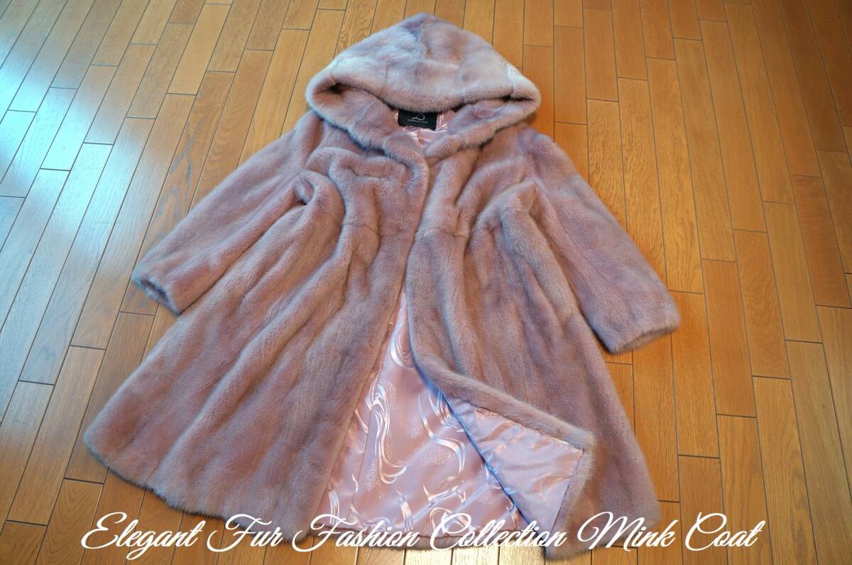 大人の余裕を漂わせて☆贅沢なフード付きオールドローズミンクコート本物毛皮コートくすみピンク新品1点物リアルファーコート