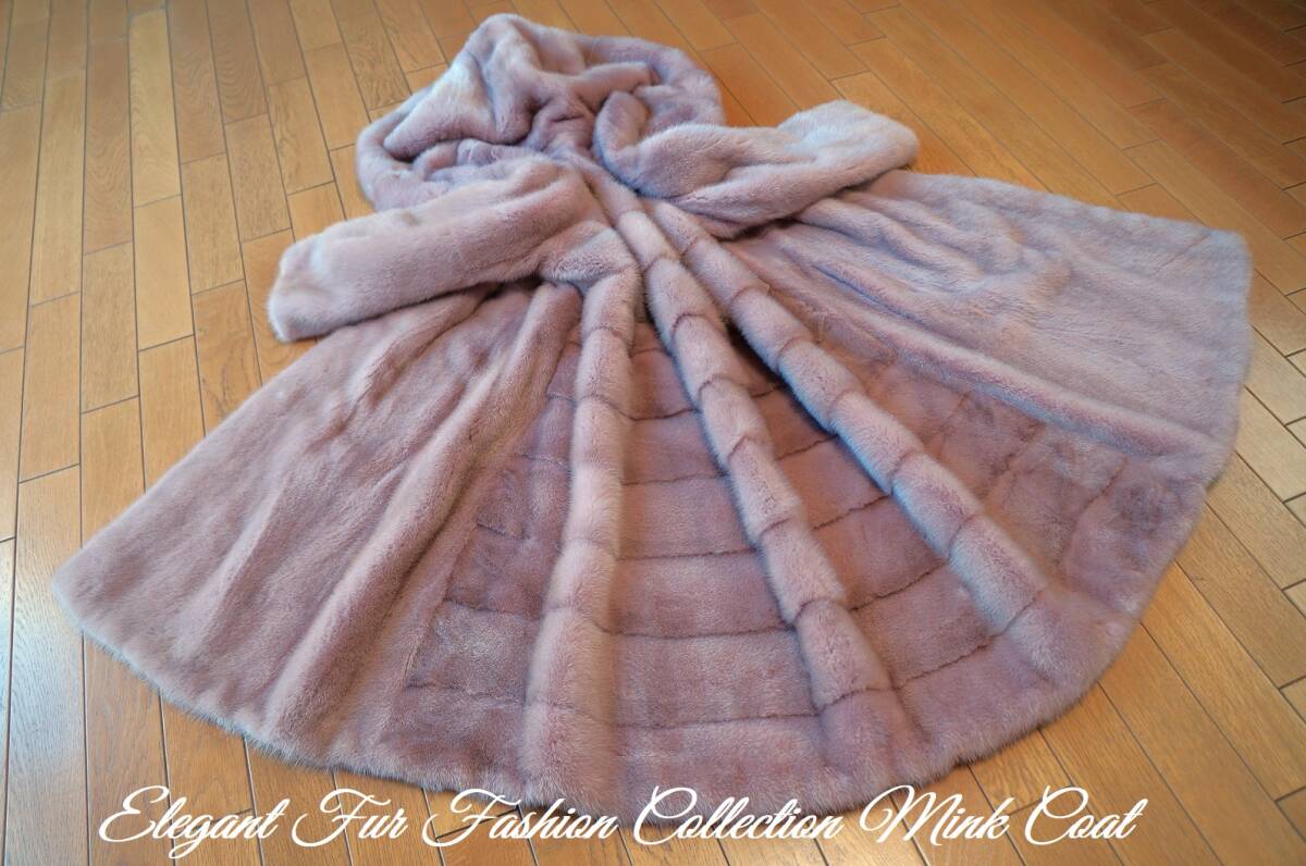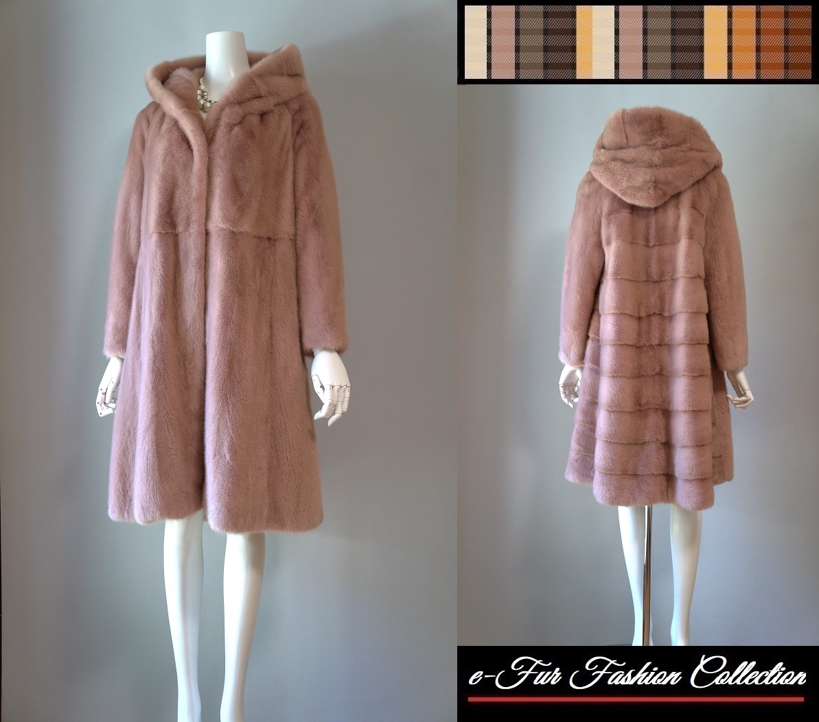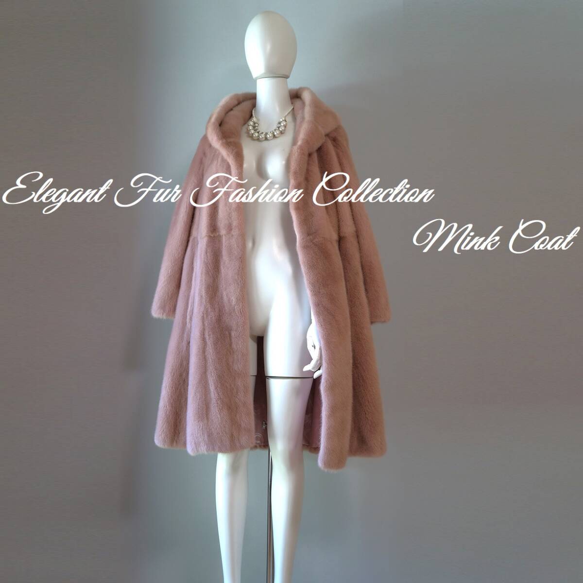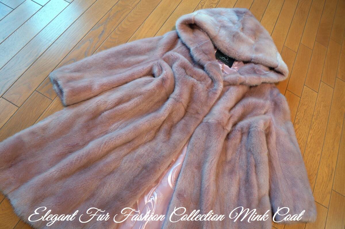 大人の余裕を漂わせて☆贅沢なフード付きオールドローズミンクコート本物毛皮コート くすみピンク新品1点物リアルファーコート