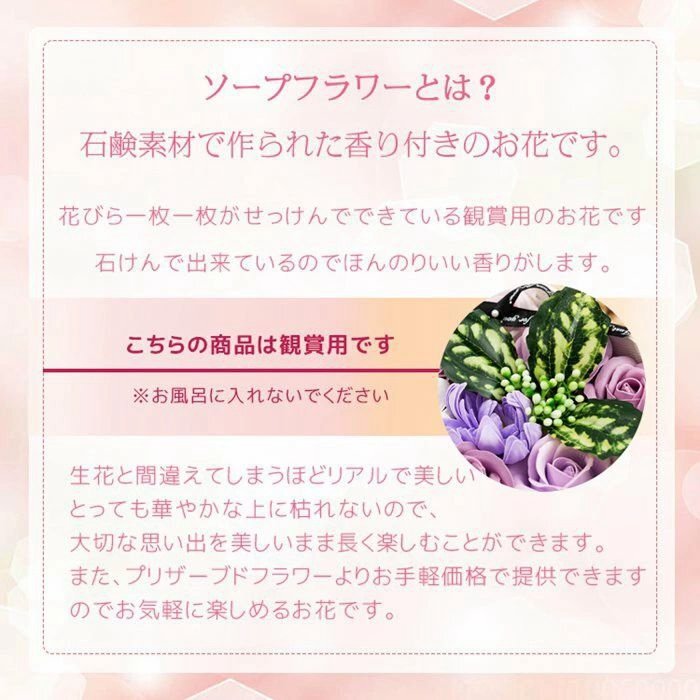 ※こちらの商品のソープフラワーは、鑑賞用のみとなります。