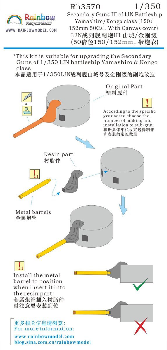 Rainbow Model Rb3570 1/350 Secondary Guns III of IJN Battleship Yamashiro/Kongo class (150/152mm 50Cal. With Canvas cover)