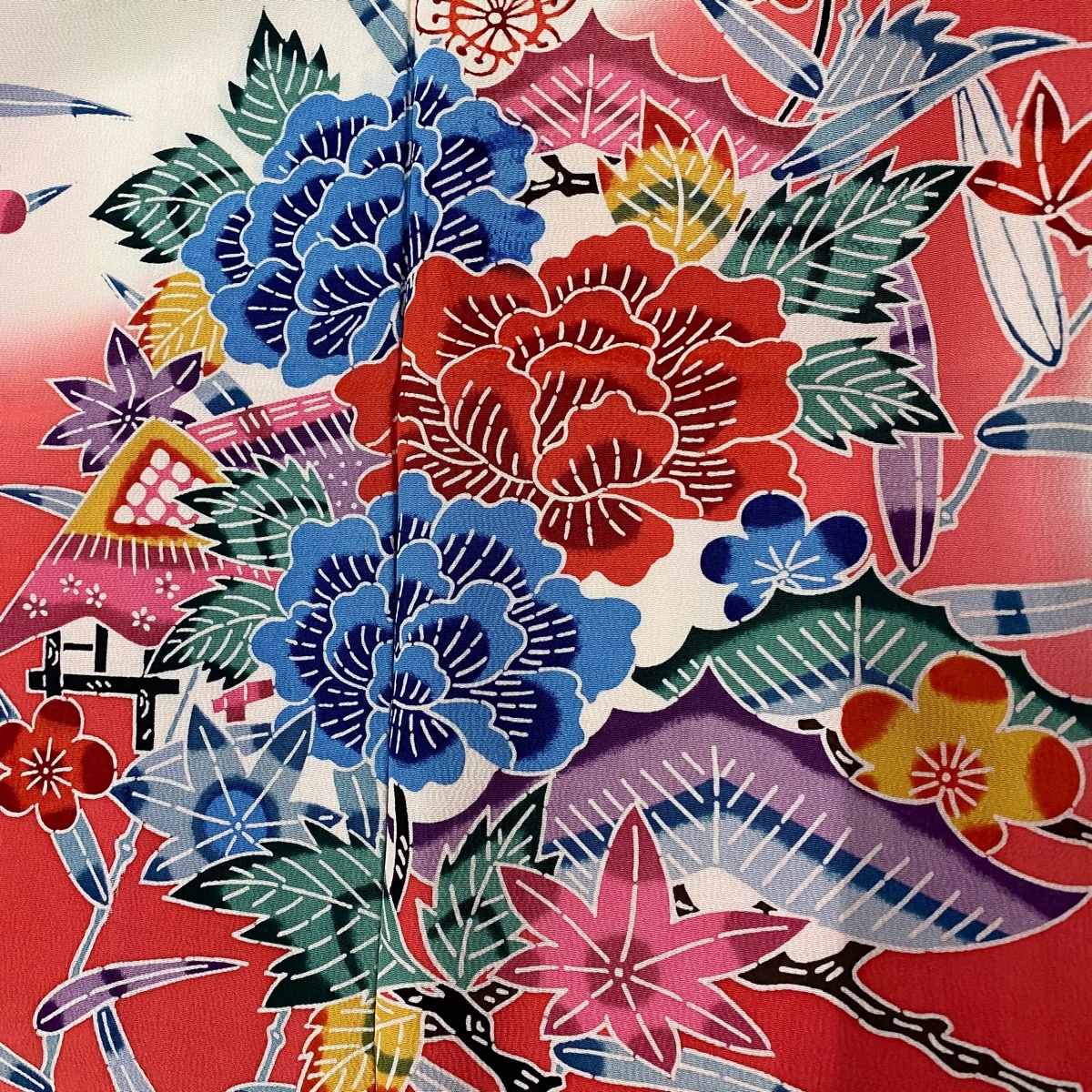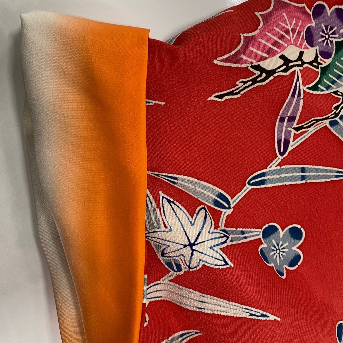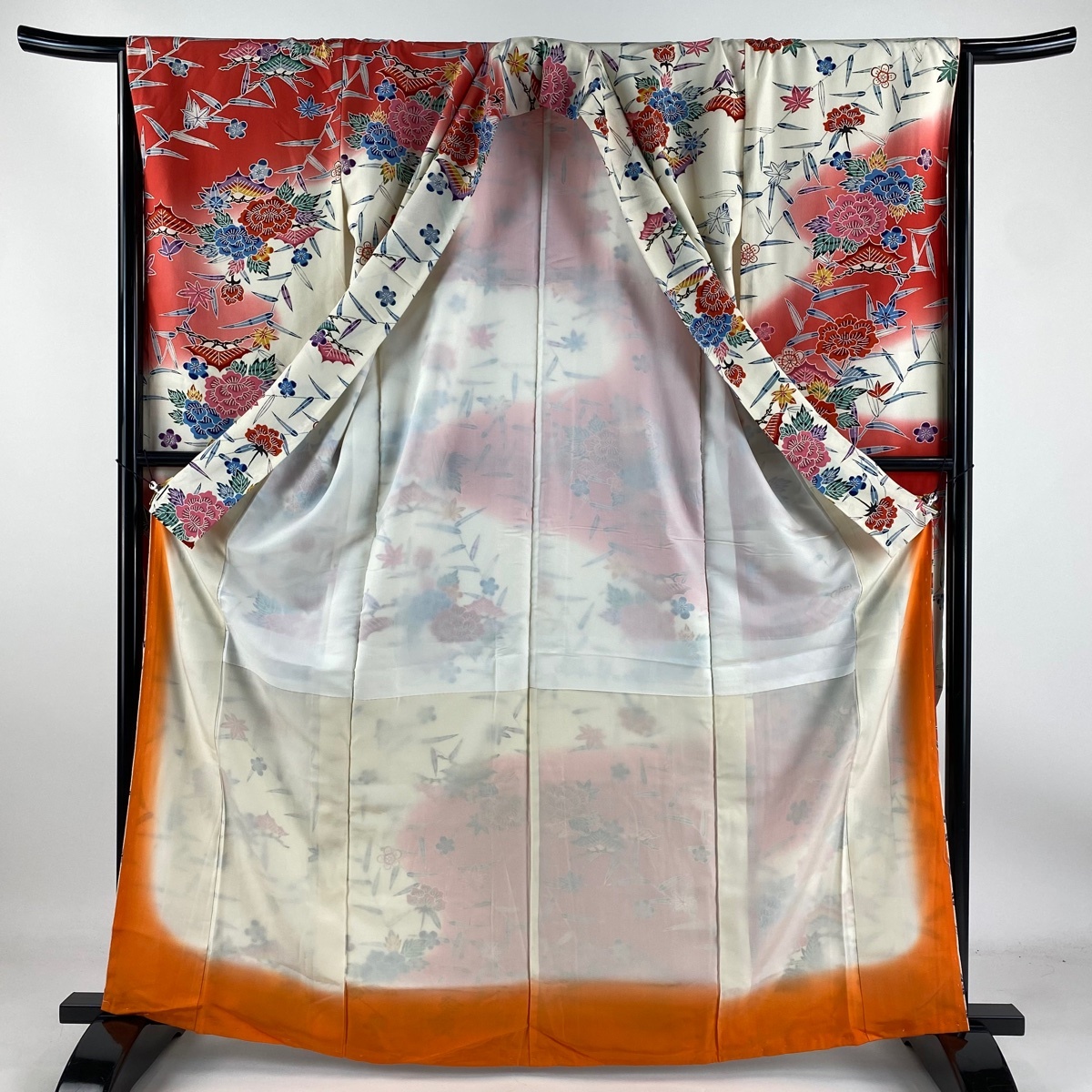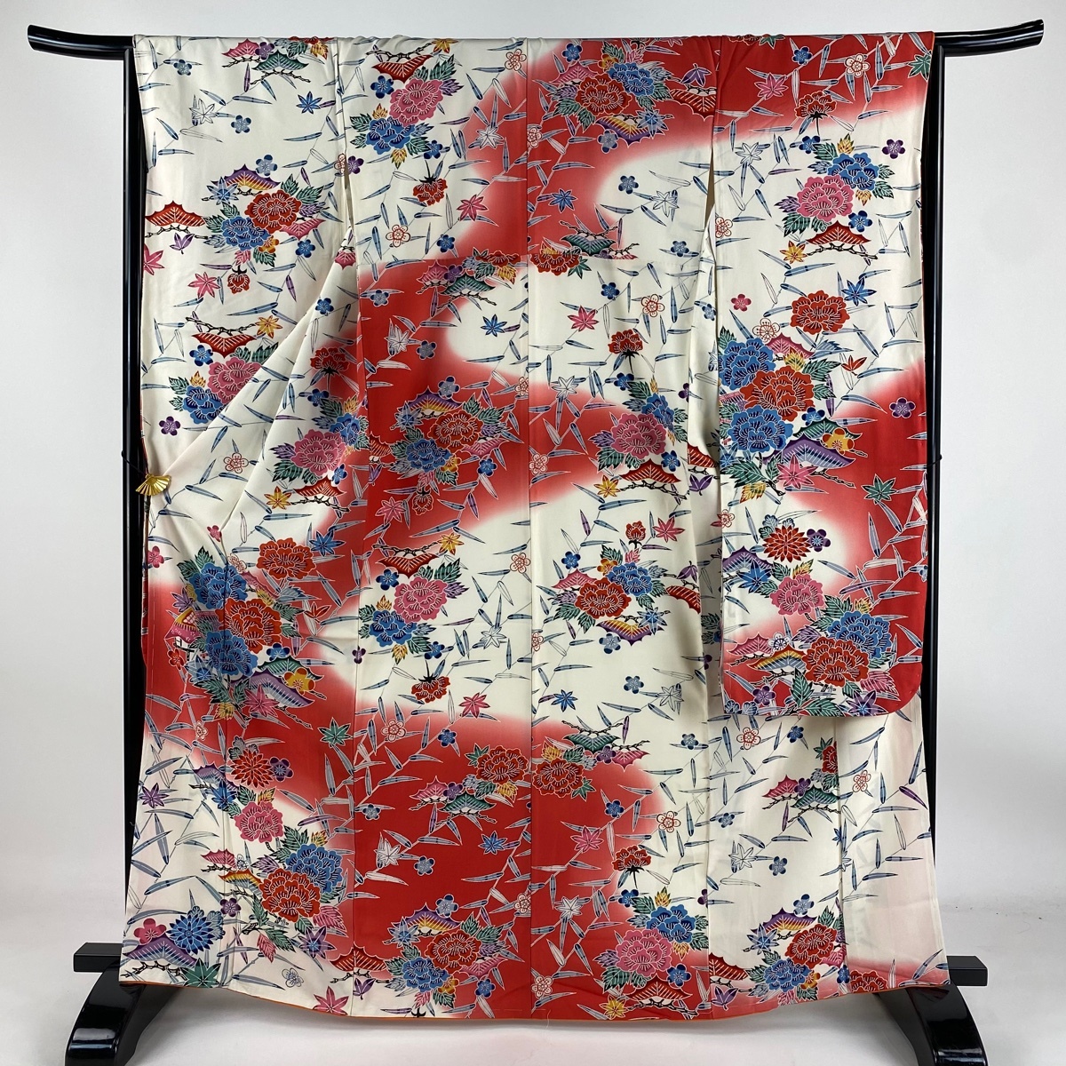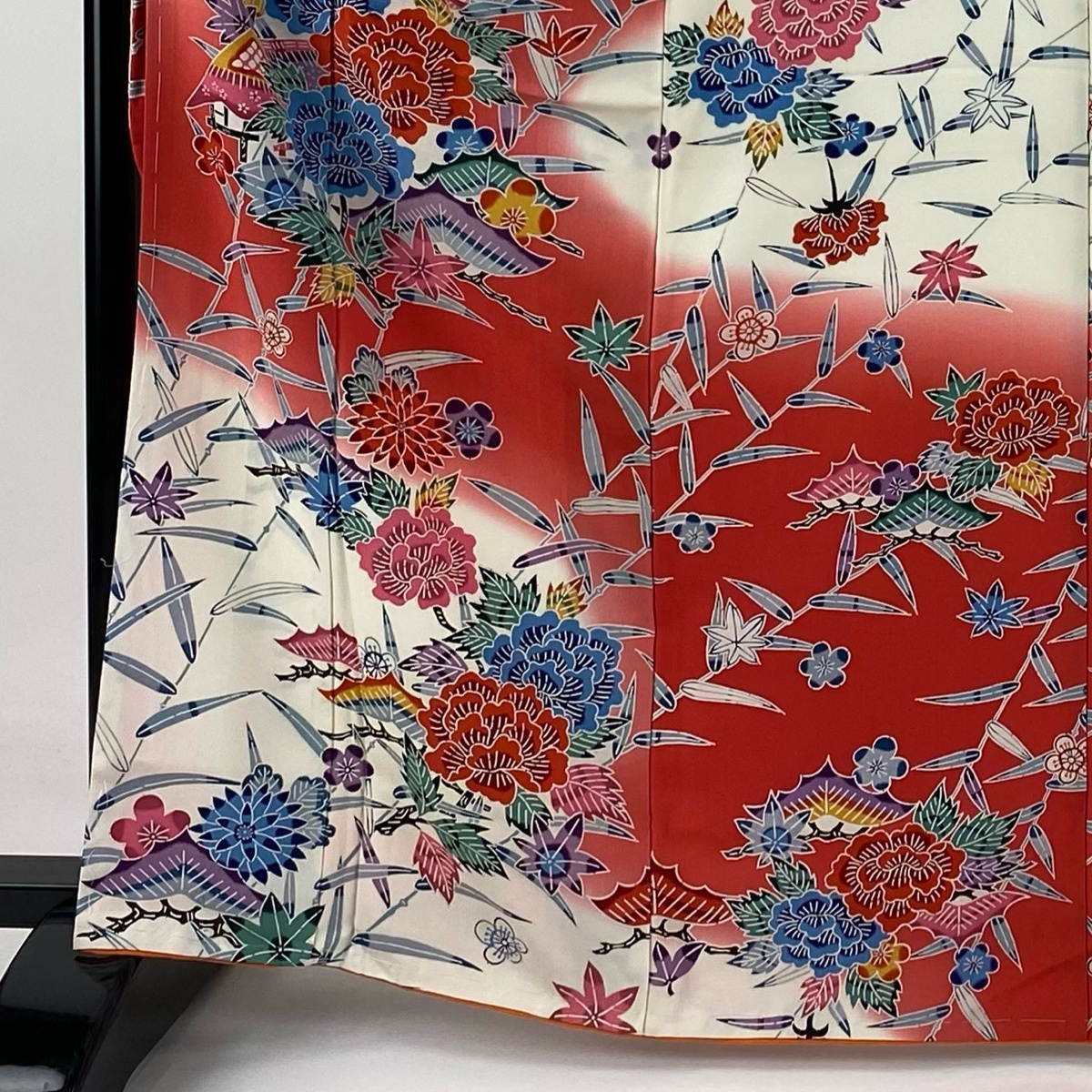 振袖 美品 名品 松竹梅 家屋 染め分け ぼかし 茜色 袷 身丈166.5 裄丈65 M 正絹 【中古】 |