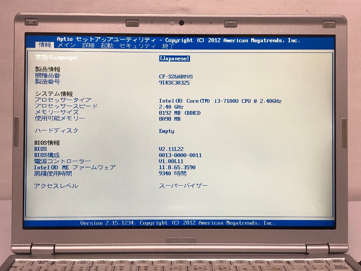 ジャンク/ Panasonic CF-SZ6ADYVS Intel Core i3-7100U メモリ8.19GB ストレージ無し 【K20574】
