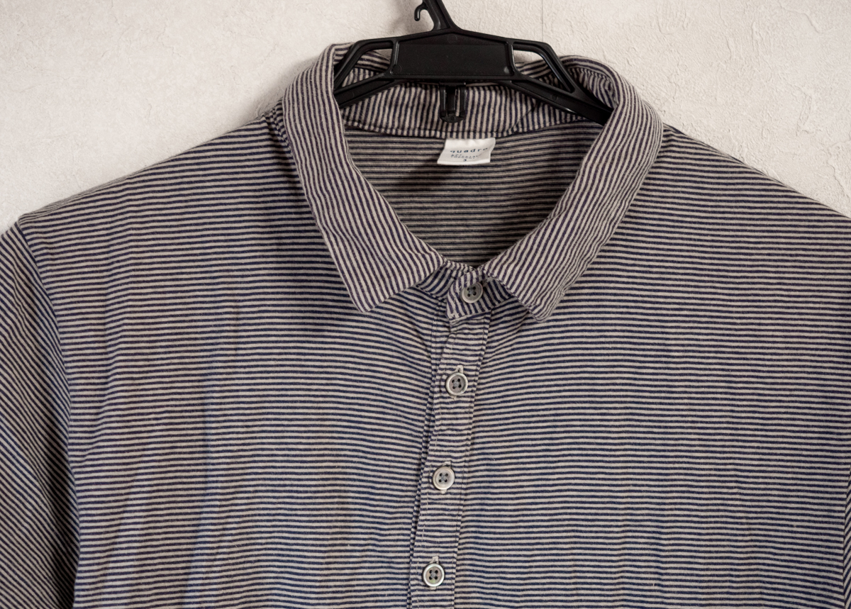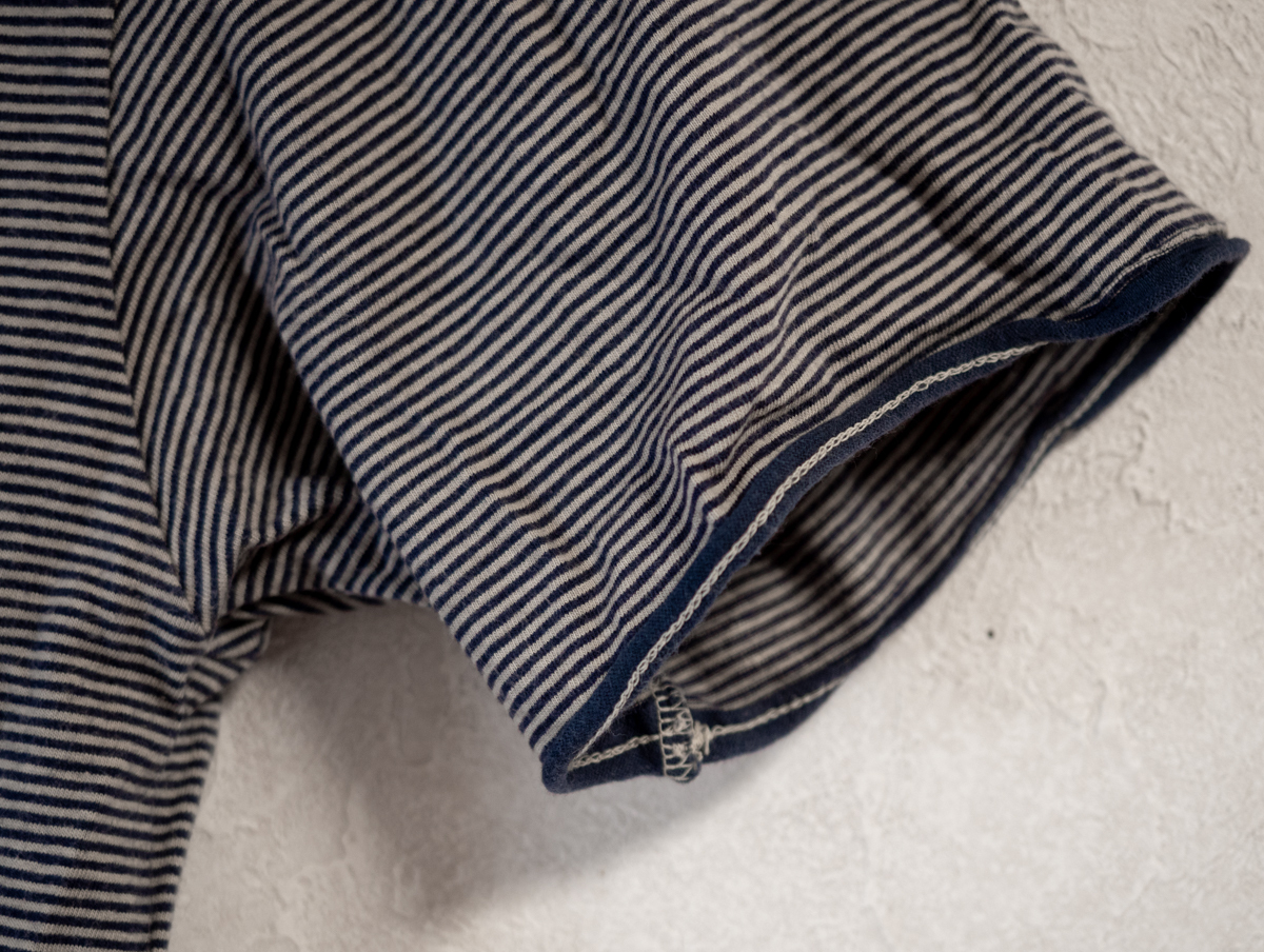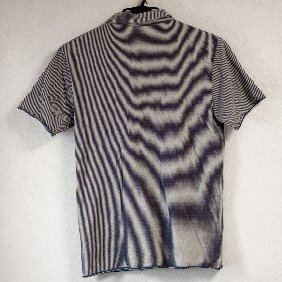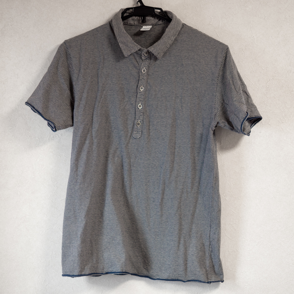グレーと濃紺の細いボーダーの控えめなデザインで、コーディネートしやすいです。