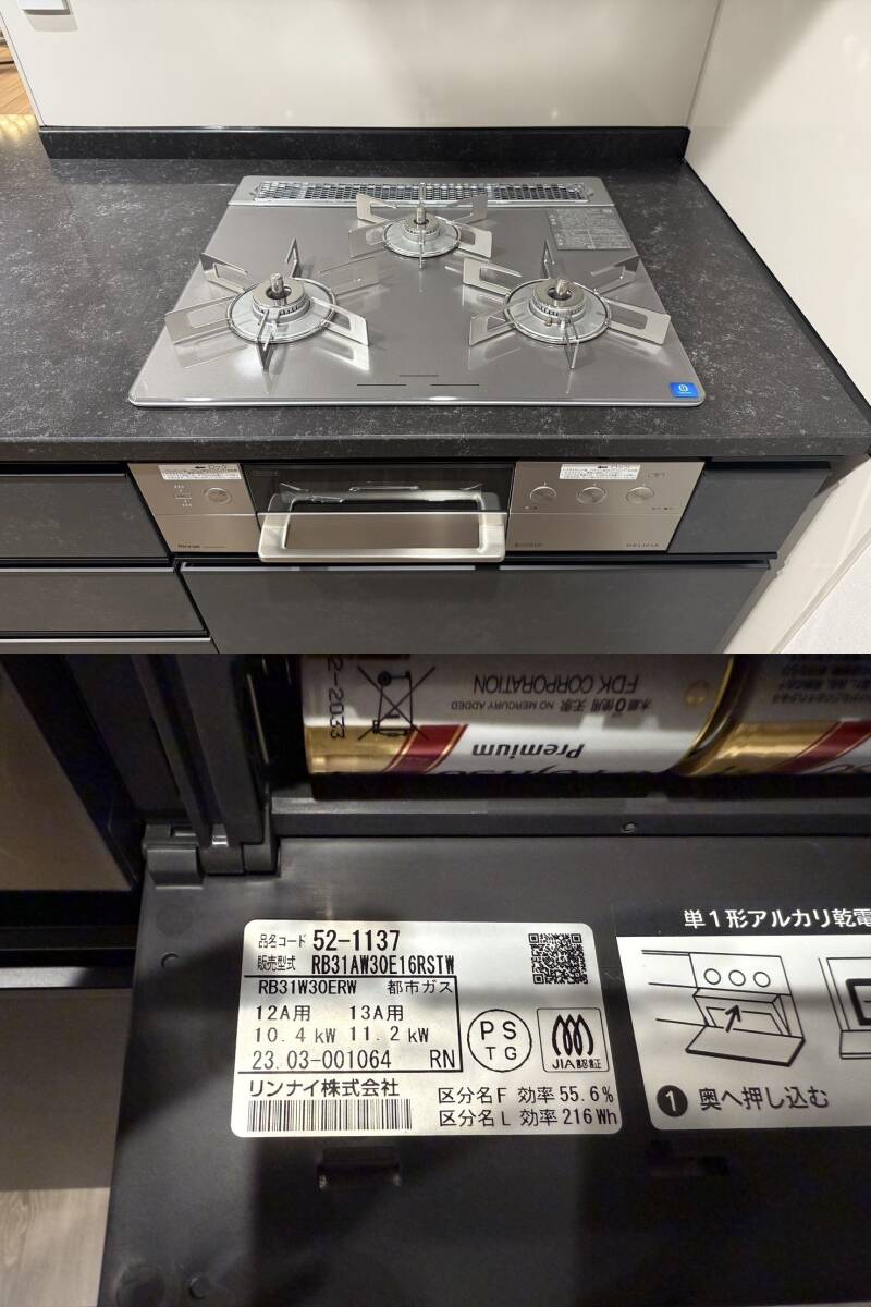 コンロ : リンナイ 都市ガス用 RB31AW30E16RSTW 23年製