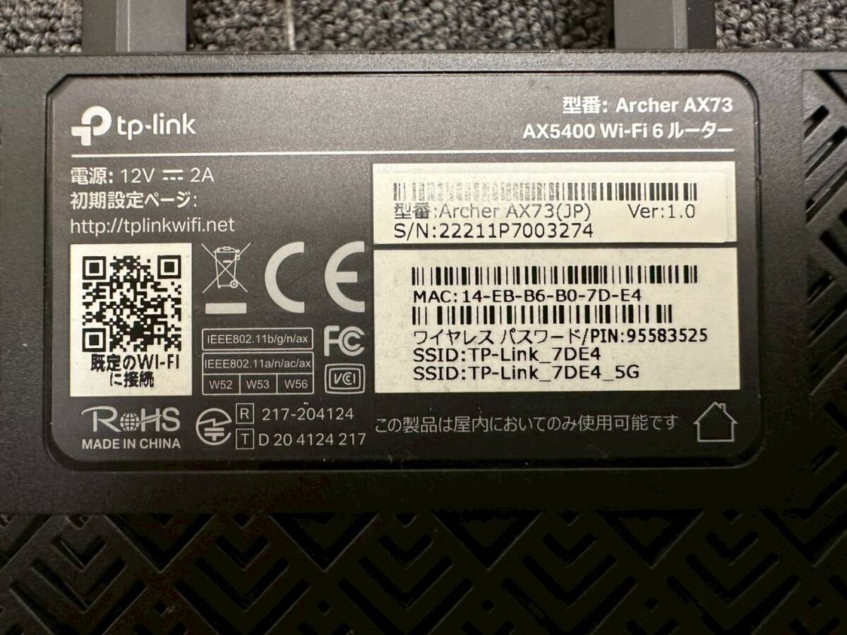 仕様 | メーカー:TP-Link 型番:Archer AX73 |