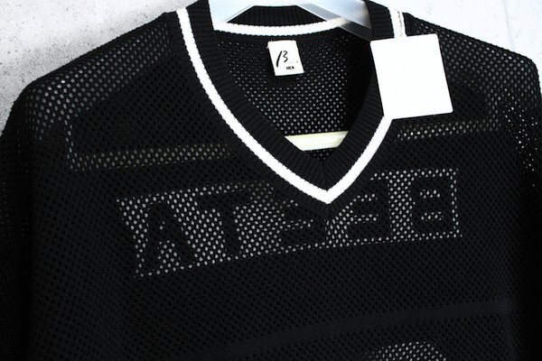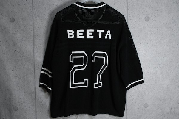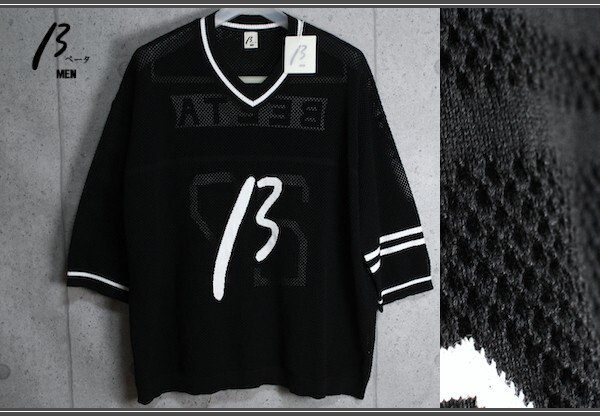 新品 ベータ・メン/β MEN 春夏 ロゴ メッシュ 半袖 Vネック ニット カットソー M/黒/定価3.9万円/サンプル