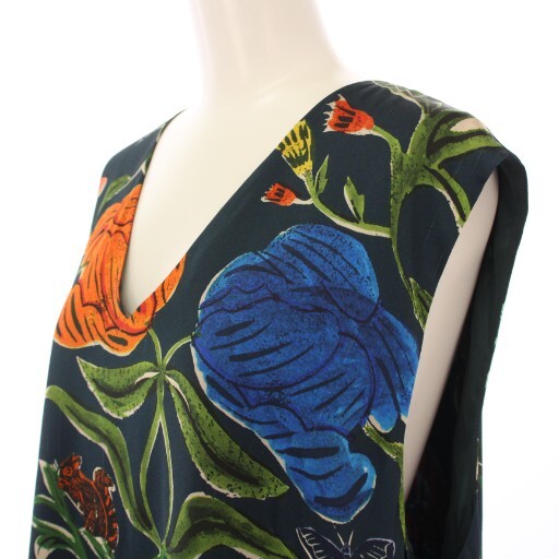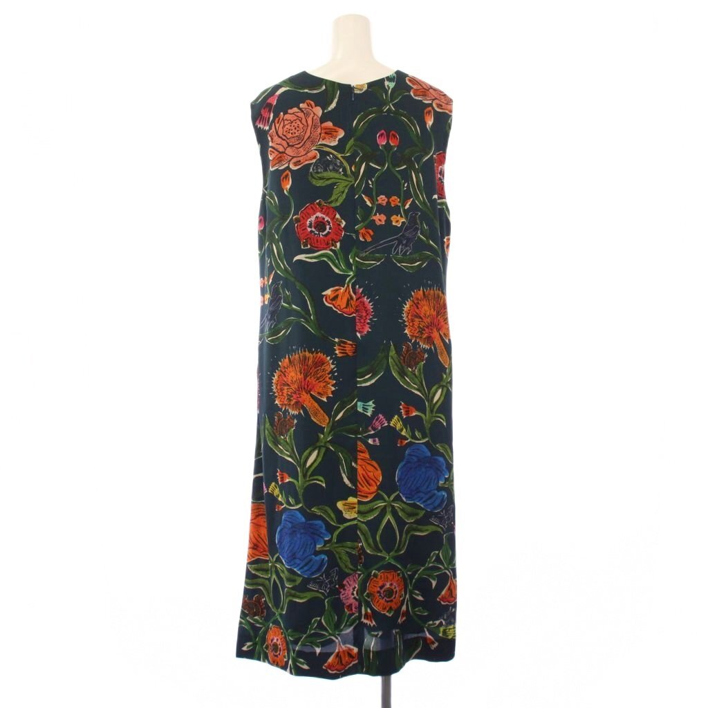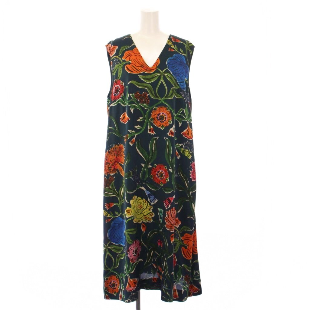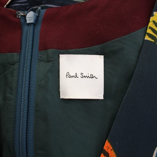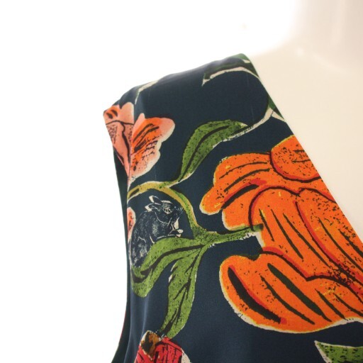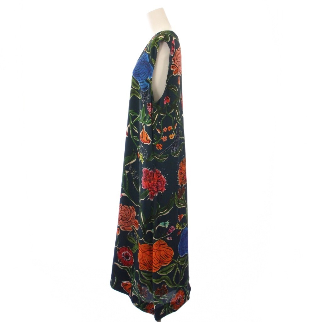 ポールスミス PAUL SMITH フレアワンピース ミモレ ロング ノースリーブ Vネック 花柄 44 紺 ネイビー マルチカラー /BB レディース