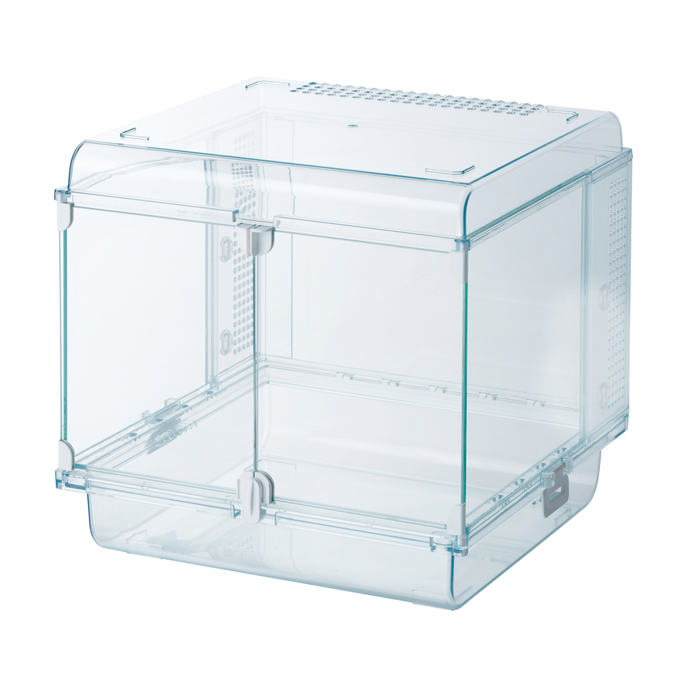 オールクリアケージはガラス製、ガラスハーモニーマルチ300スクイーズキューブタイプマルチケージ お部屋のインテリアに馴染みやすいオールクリアです。多目的 組み立て不要 マルチケージ 中がはっきりと見えて、正面からお手入れができるので、ペットが人に慣れやすいです。上面ははっきりと見えています。手入れが簡単なオープンフロント。正面玄関はそれが正面から流れることを可能にします。天面は開閉できません。ドアロック どちらのドアも、お手入れ内容に応じて半分に開閉できます。ホイール(別売)はサイド(両面)に取り付けることができます。お好みのレイアウトをお楽しみください。●上部と側面の通気孔は通気性があり、ケージ内で快適です。最大2段まで積み重ねることができます。ボトムトレイは取り外して簡単に掃除できます。ボトムトレイは完全に洗えます。パネルヒーターは底面に取り付けることができます。ケージサイズ:幅12.4 x奥行き12.0 x高さ11.8インチ(31.4 x 30.7 x 30.0 cm);セット内容:ケージ、底面トレイ、専用キャップ×4。