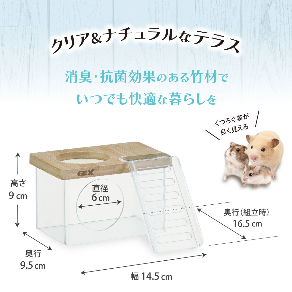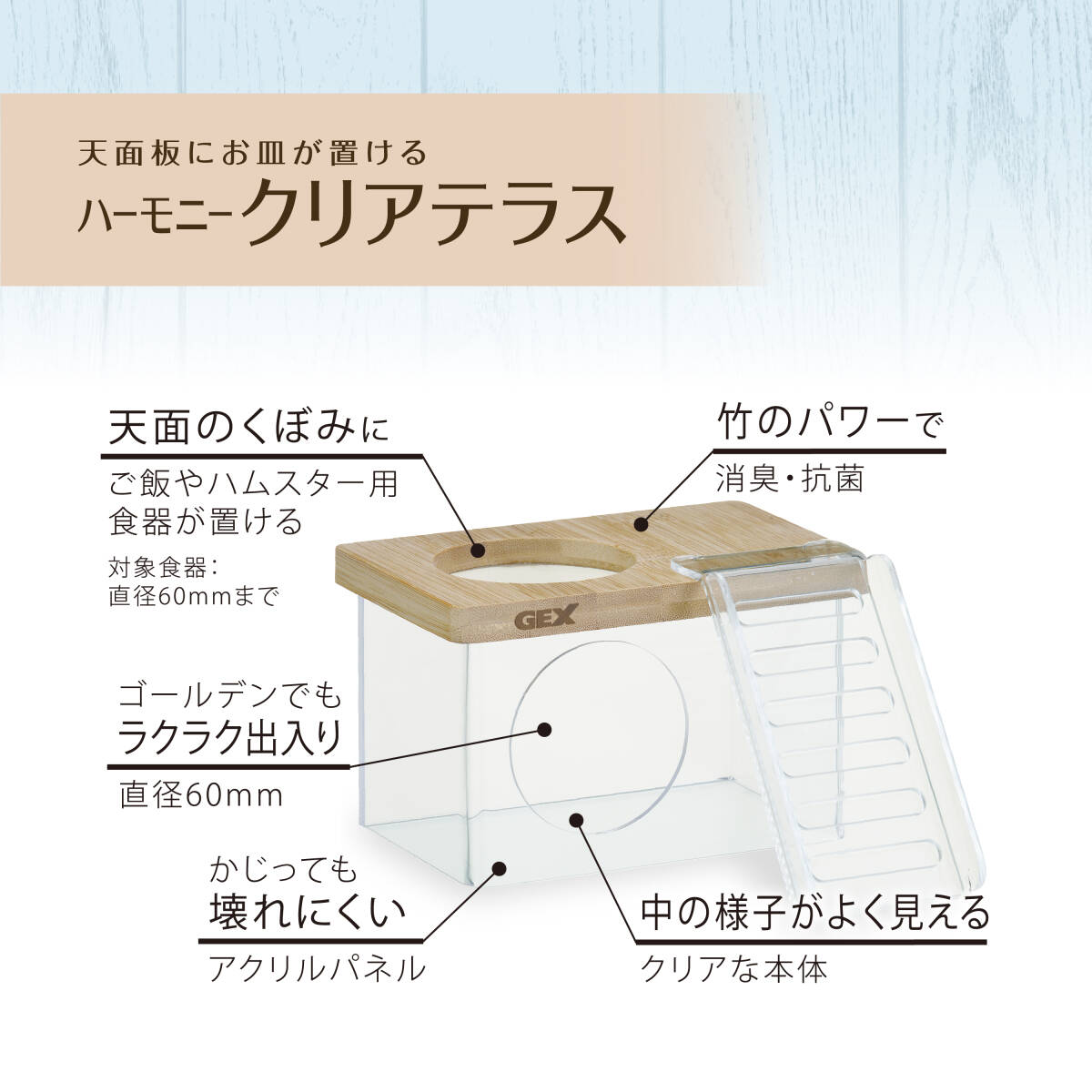 未使用品●GEX●2種2品set●ハビんぐ●【①】グラスハーモニー《マルチ300》キューブタイプ.組立て不要のクリアケージ【①】クリアテラス