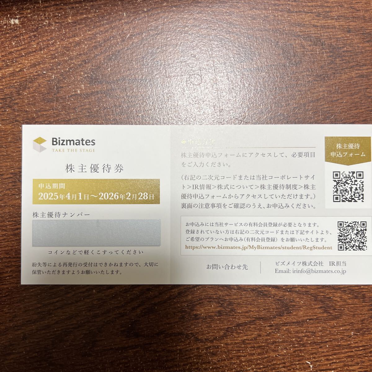 ビズメイツ 株主優待です。詳しくはホームページをご確認ください。
