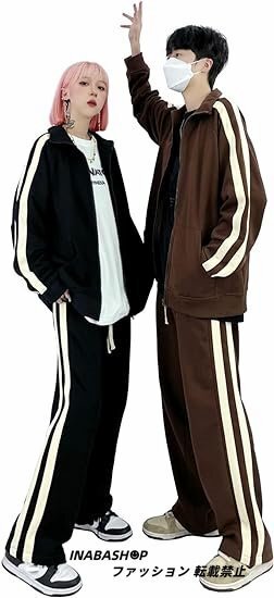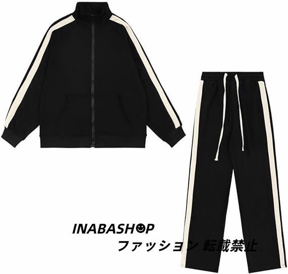 春秋 長袖 ライン ジャージ 上下セットアップ レディース トラックスーツ スポーツウェア スウェット カジュアル ゆったり 韓国風 男女兼用