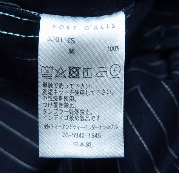 | <商品名> POST O'ALLS OVERALLS ポスト オーバーオールズ 3301-IS Mainter Pants Gangster stripe indigoインディゴ ストライプ ペインター パンツM <サイズ> M <詳しい寸法> ウエスト83股上32股下64.5裾幅25(単位:㎝) ぐらいです。 <商品状態> 多少の使用感、細かなスレやアタリはございますが全体的に見て良好です。裾上げされております。 <商品説明> 3301-IS Mainter Pants Gangster stripe indigo 定価31900円