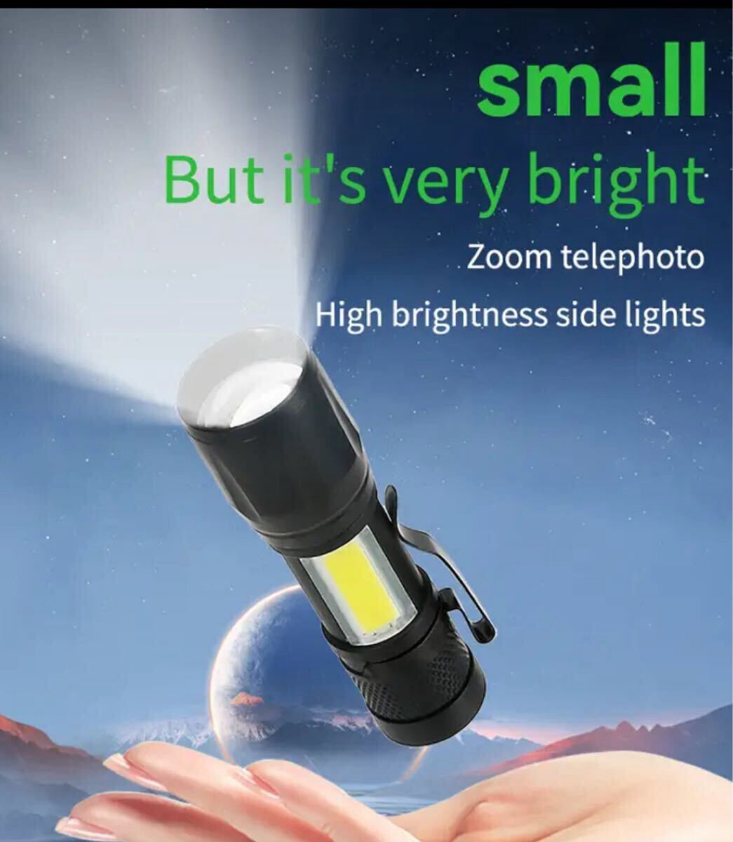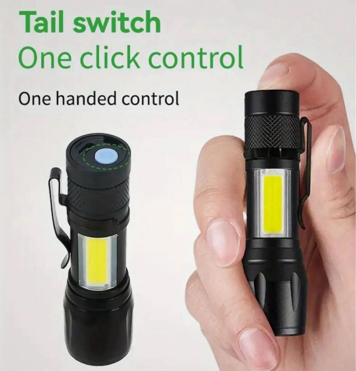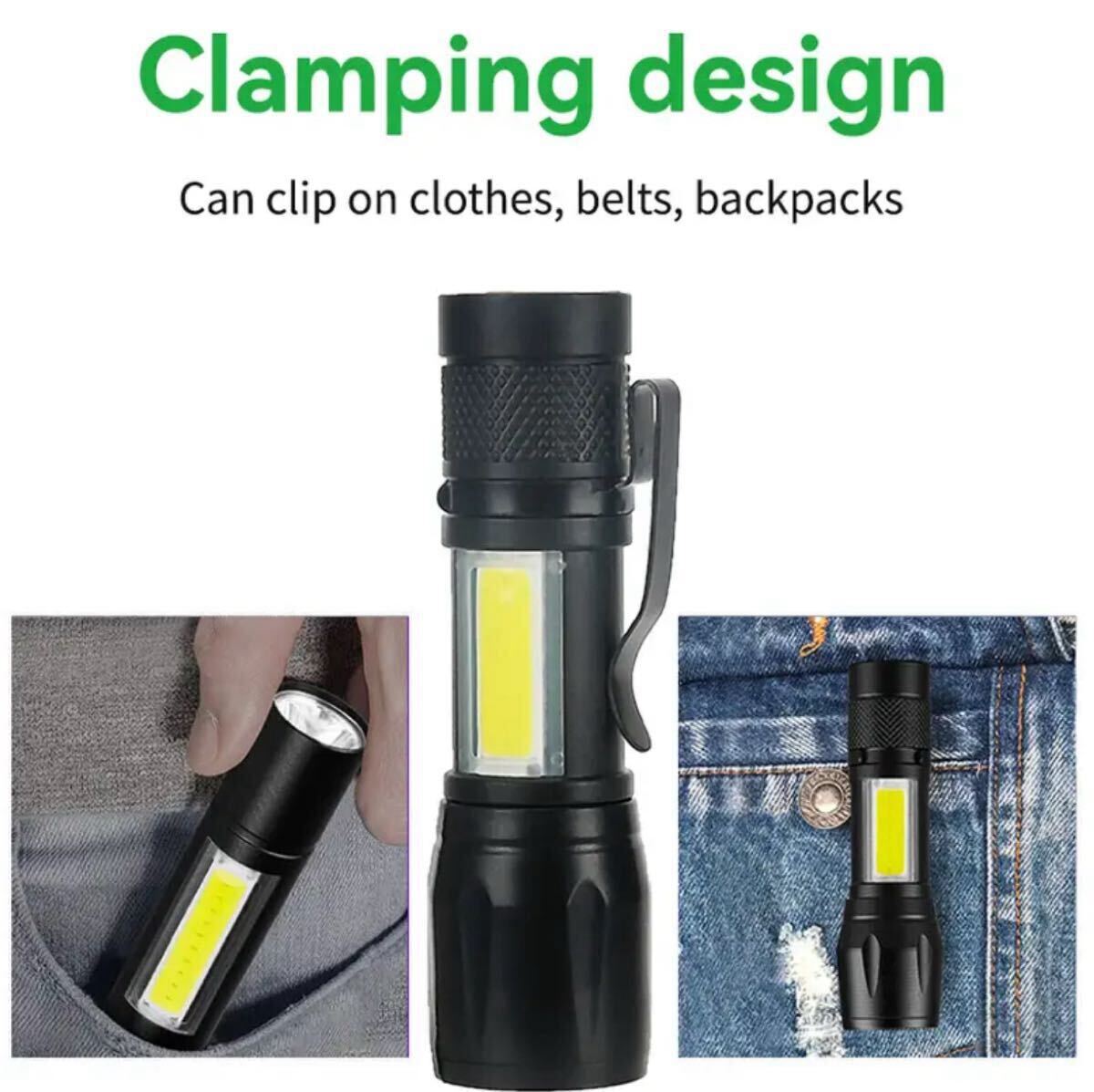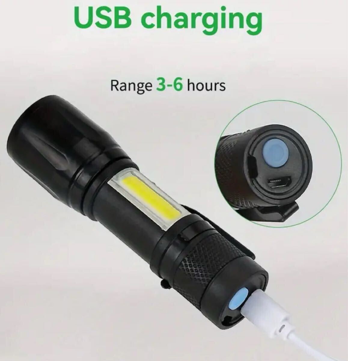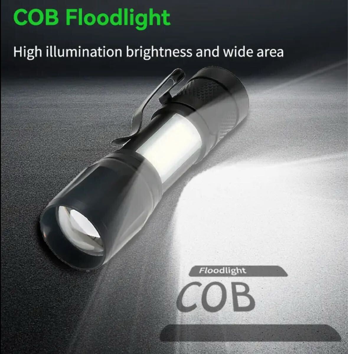コンパクト400ルーメンのミニLEDフラッシュライト、COBサイドライト付き、ズーム可能なビーム、USB充電式