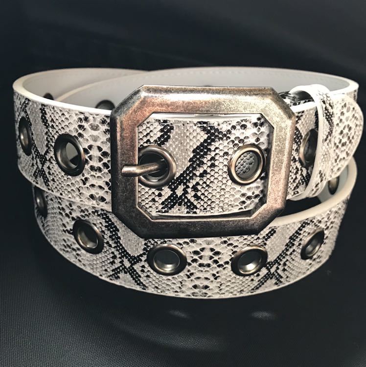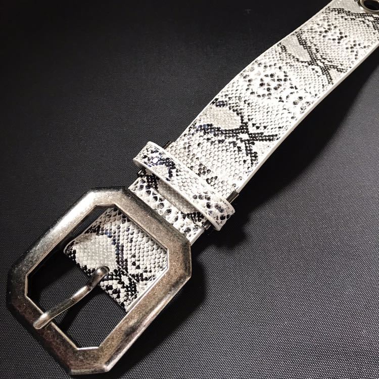 大きめのバックルとヘビ柄がインパクトのあるカッコイイベルトです。