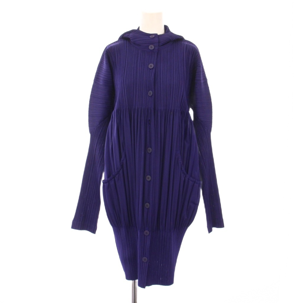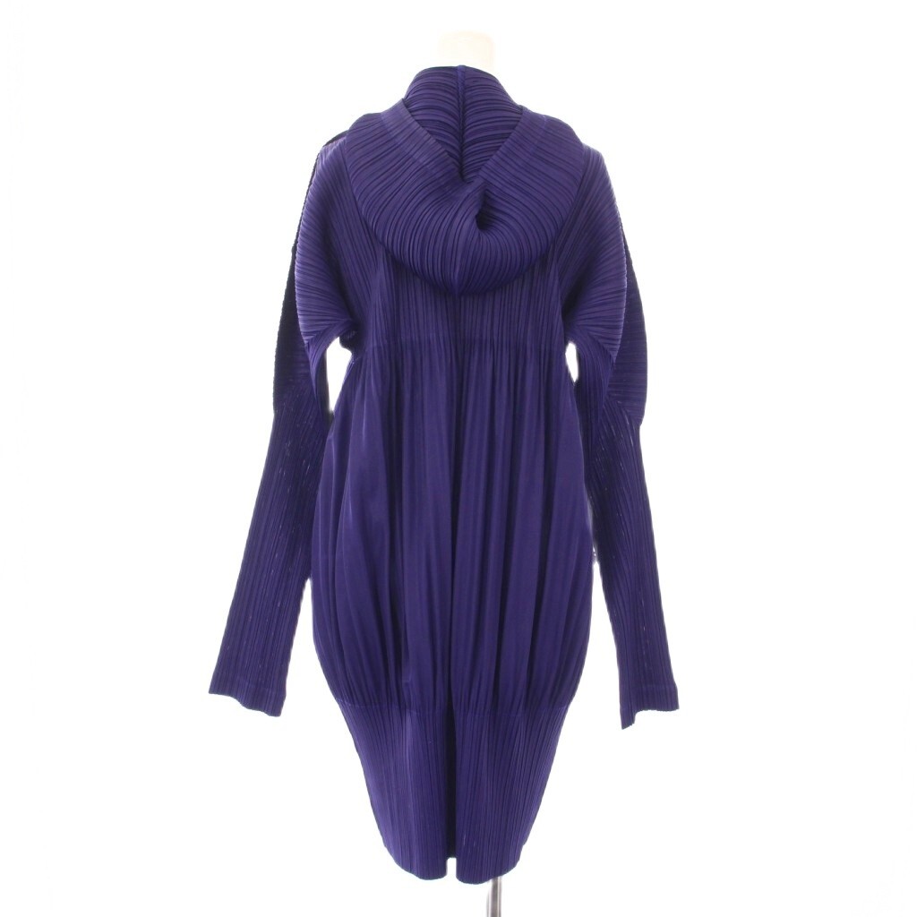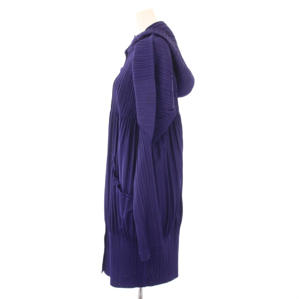 プリーツプリーズ PLEATS PLEASE イッセイミヤケ ロングコート アウター フード ストレッチ 5 紫 パープル /BB レディース