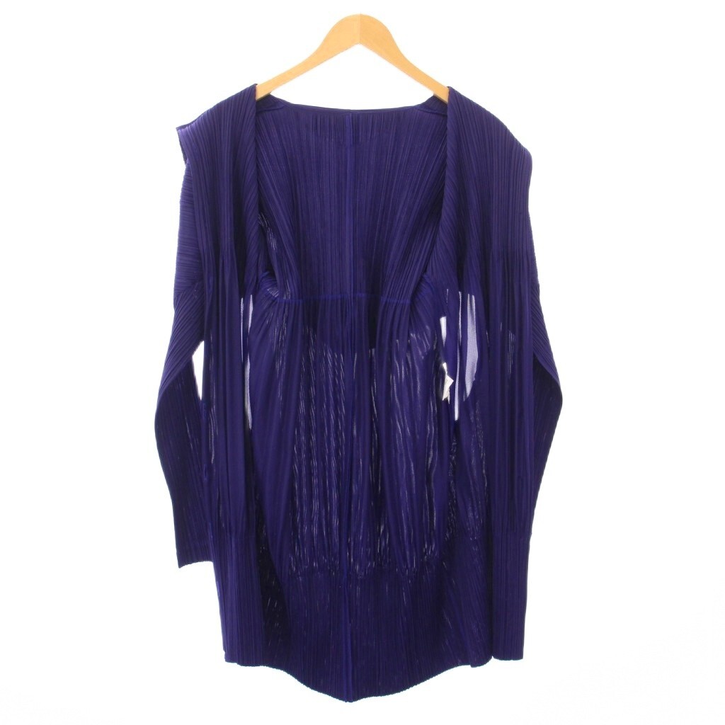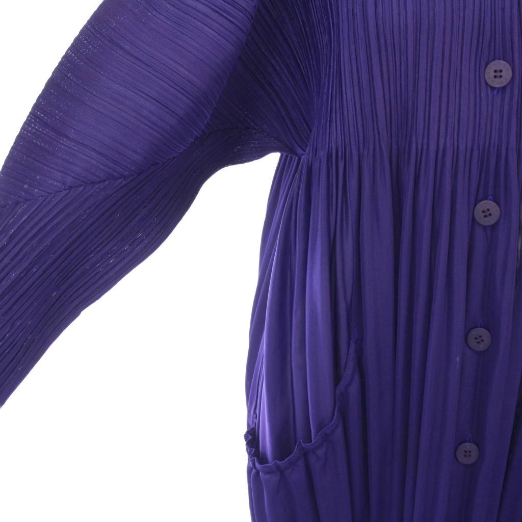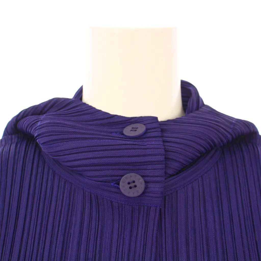 プリーツプリーズ PLEATS PLEASE イッセイミヤケ ロングコート アウター フード ストレッチ 5 紫 パープル /BB レディース