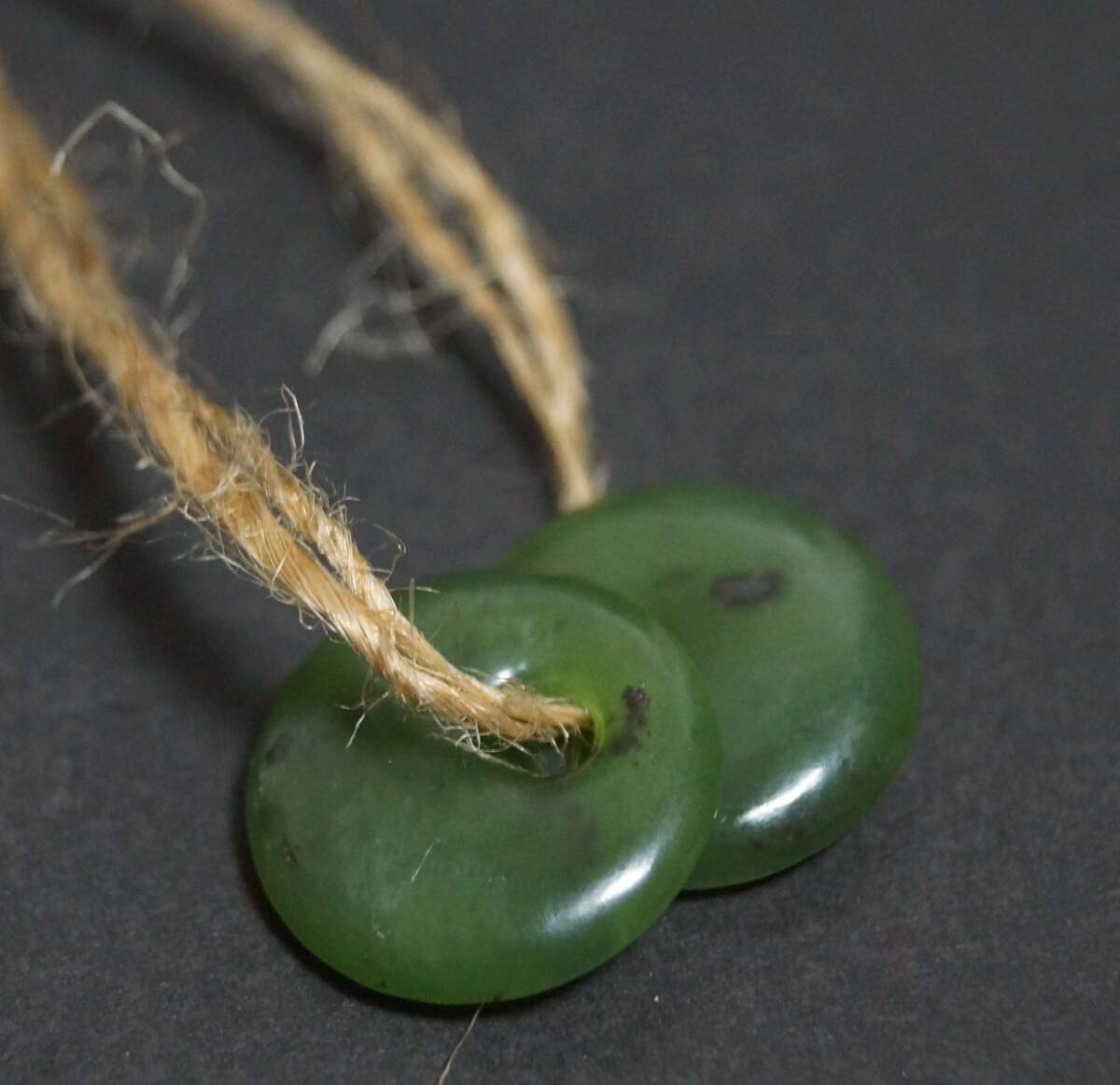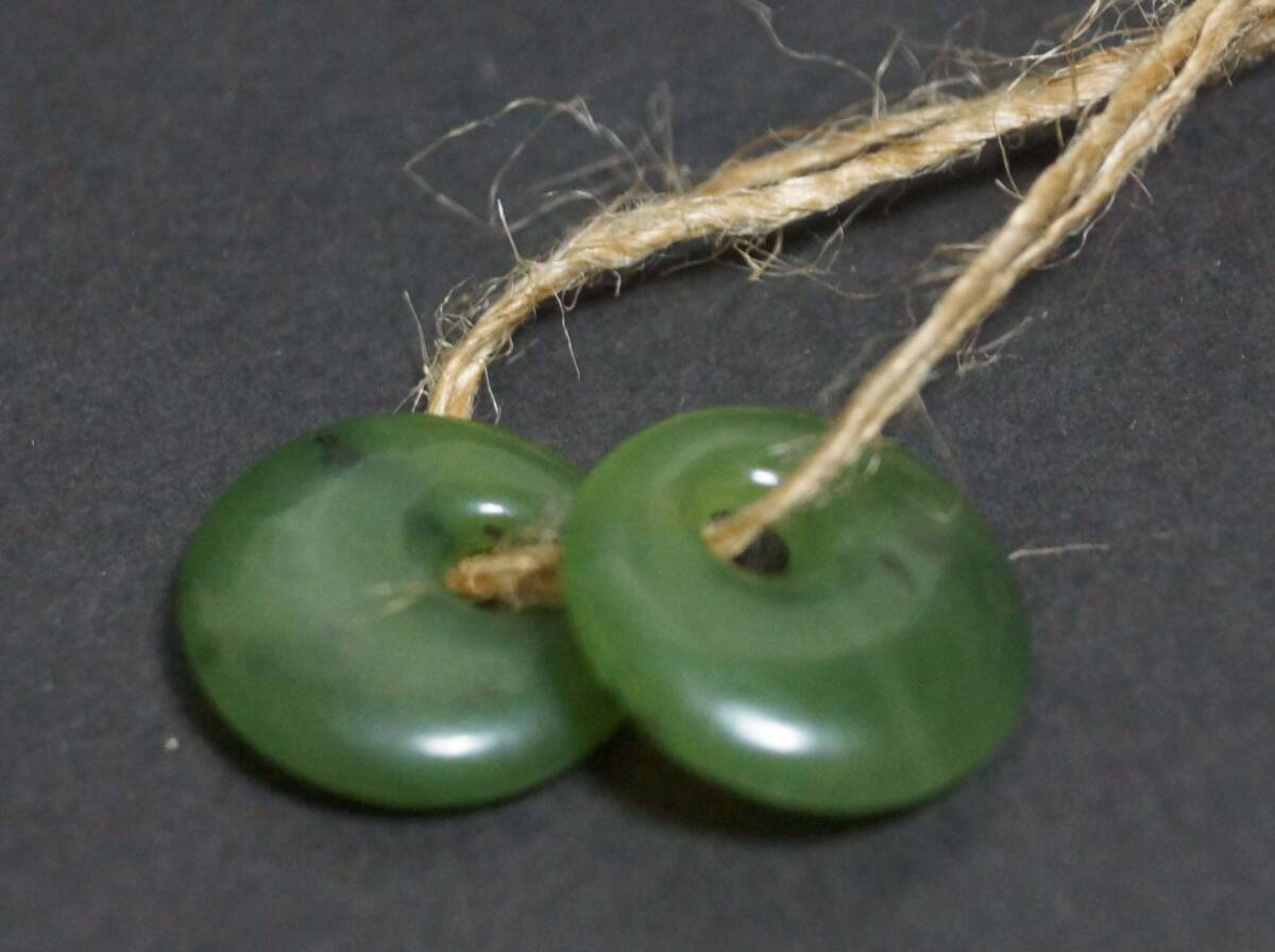 【寂】古代 和田玉(ホータン) 環状 根付 一連(2個) 緒締玉 提げ物 ビーズ 装飾品 総重4g☆時代物☆s70905