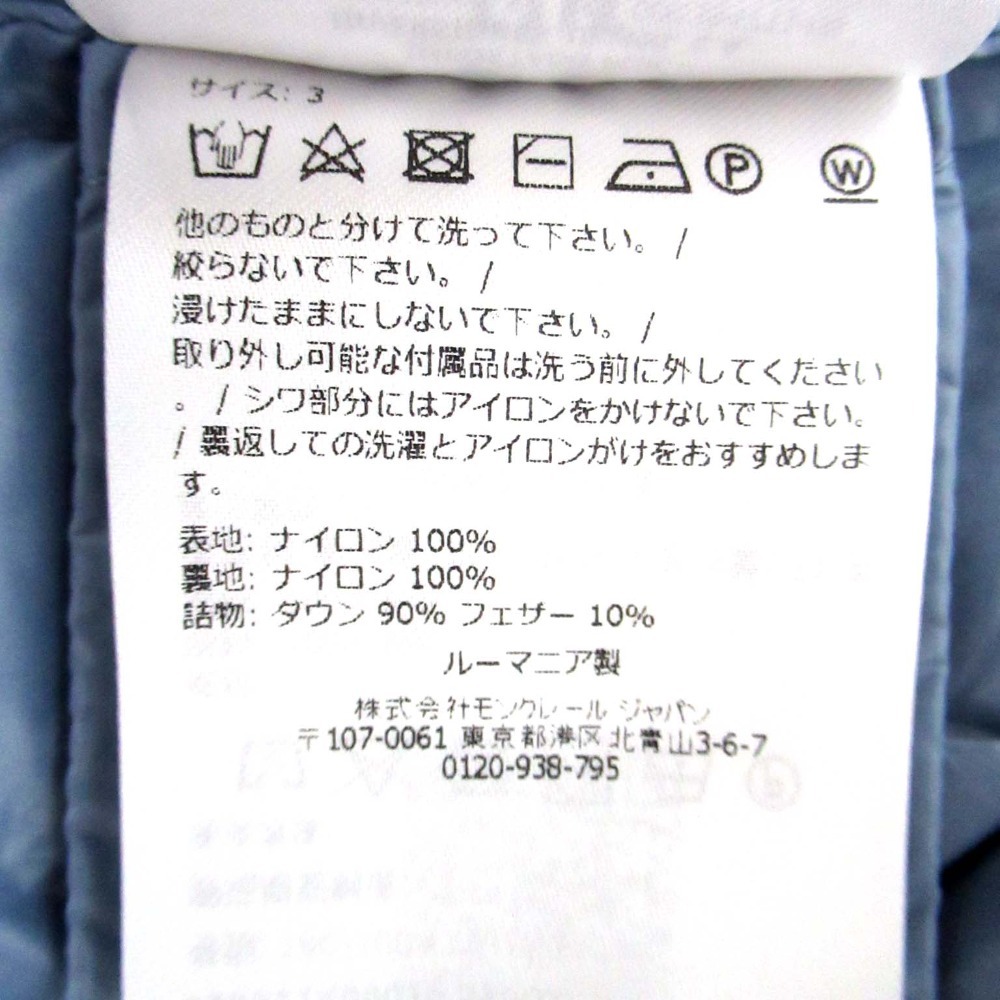 商品名:24AW MONCLER モンクレール LEVECHE ミニワッペン ナイロン ダウンジャケット J20911A00019 サイズ3 ブルー