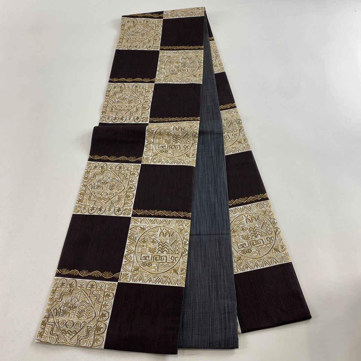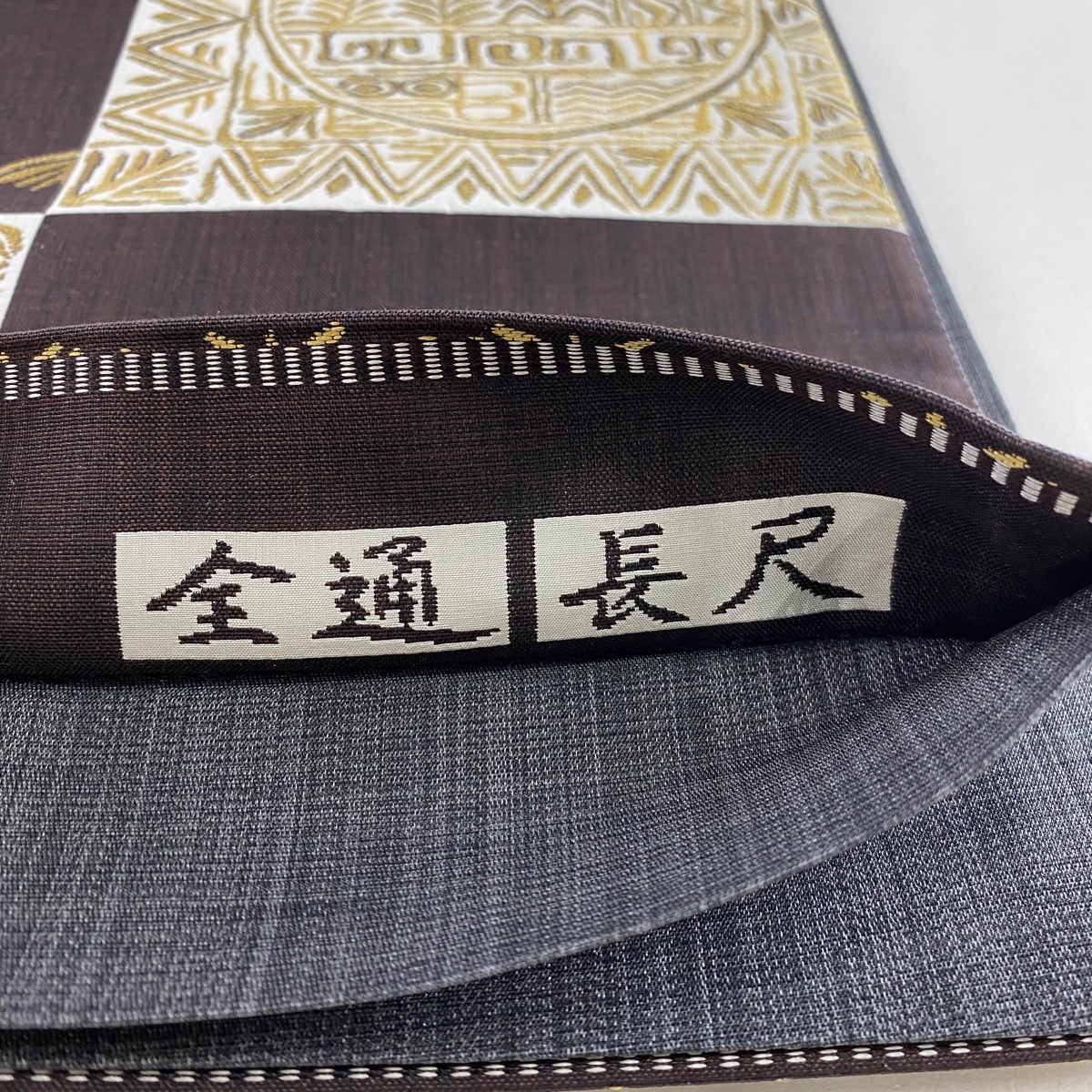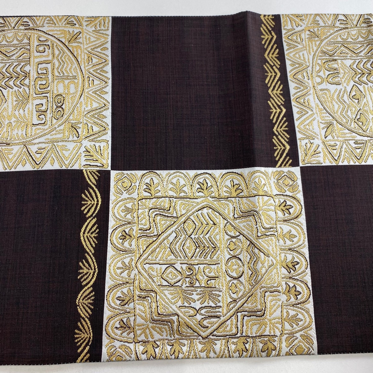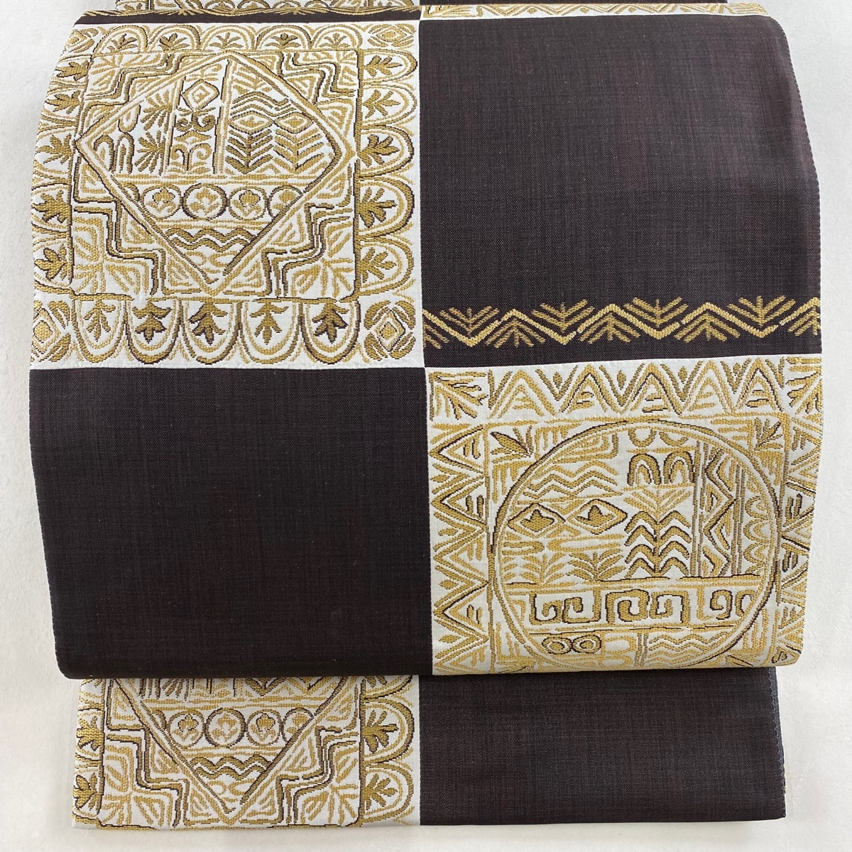 | 袋帯 美品 秀品 市松 幾何学模様 焦茶色 全通 正絹 【中古】 |