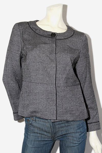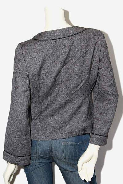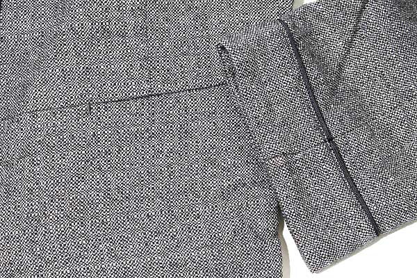 【素材】表地:毛71%、レーヨン23%、絹3%、ポリウレタン1%、キュプラ1%(ベンベルグ)ポリエステル1% 裏地:キュプラ100% パイピング部分:ポリエステル100%