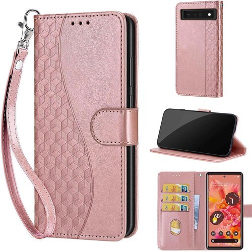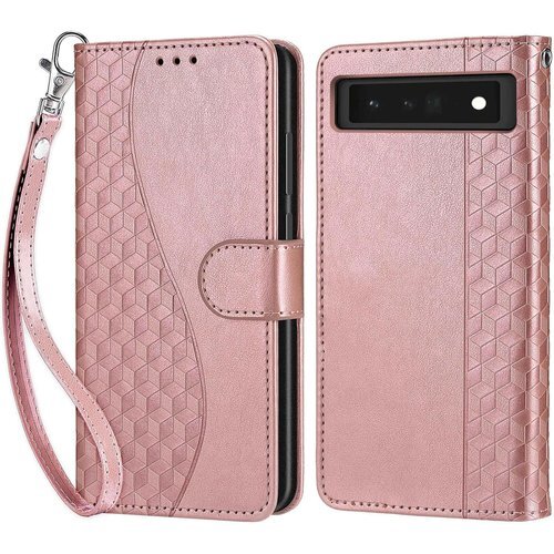 Google Pixel 6 ケース 手帳型 対応 Pixel 6 財布型 携帯カバー Pixel6スマホケース 高PUレザー 耐衝撃 耐摩擦 全面保護 ホルダーバンプパタカード収納 軽量 手触りが良い 人気上品な シンプル気質 ギフト ローズゴールド 1231