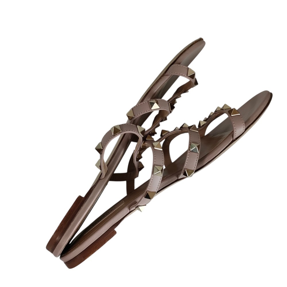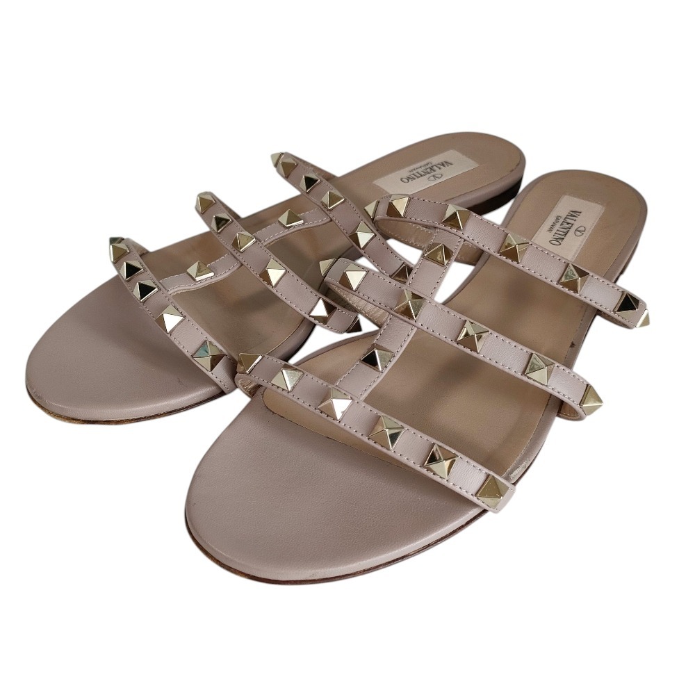 良品 Valentino Garavani ヴァレンティノガラヴァーニ レザー ロックスタッズ フラットサンダル サイズ38.5 25.5cm相当 ベージュ