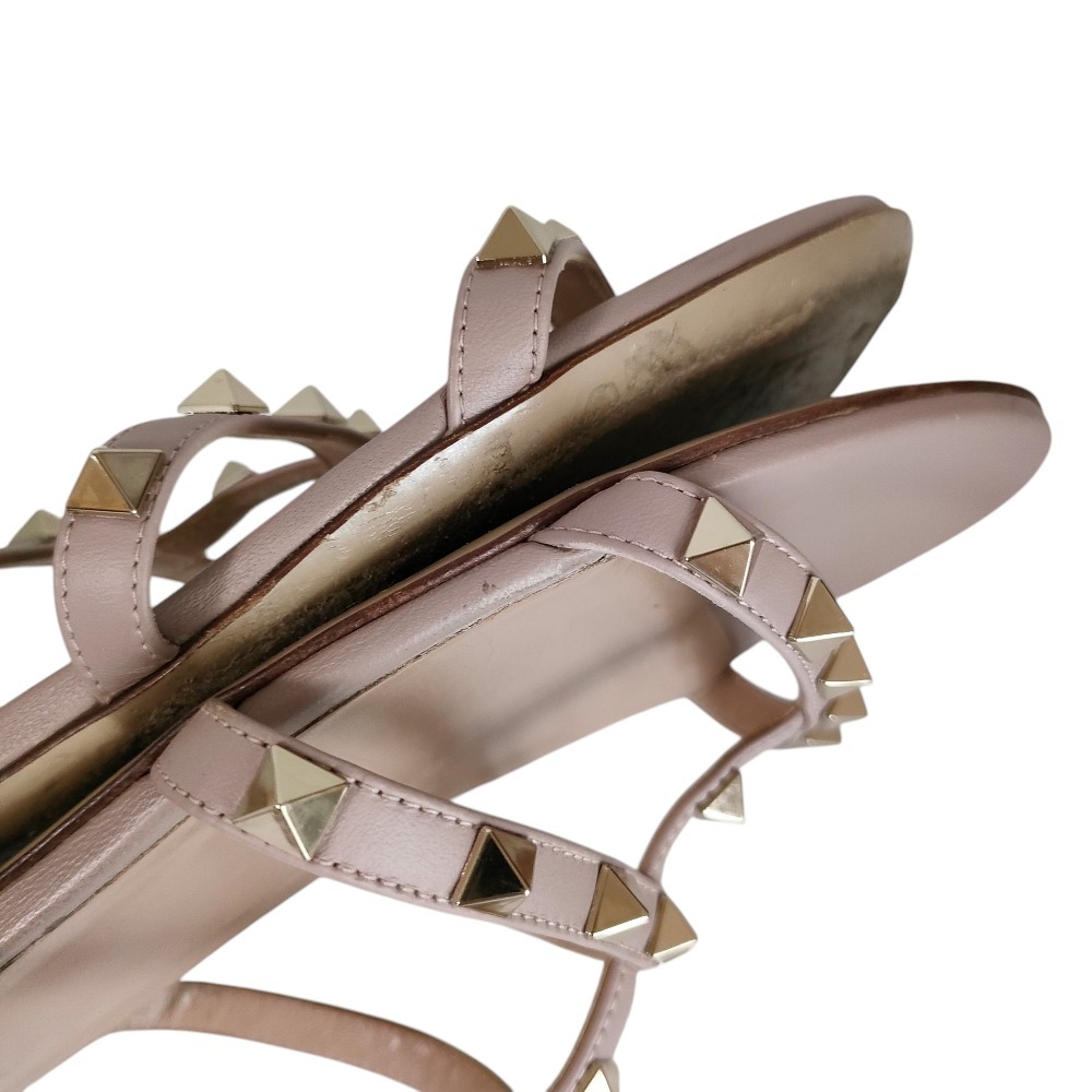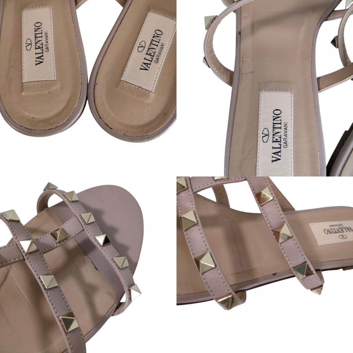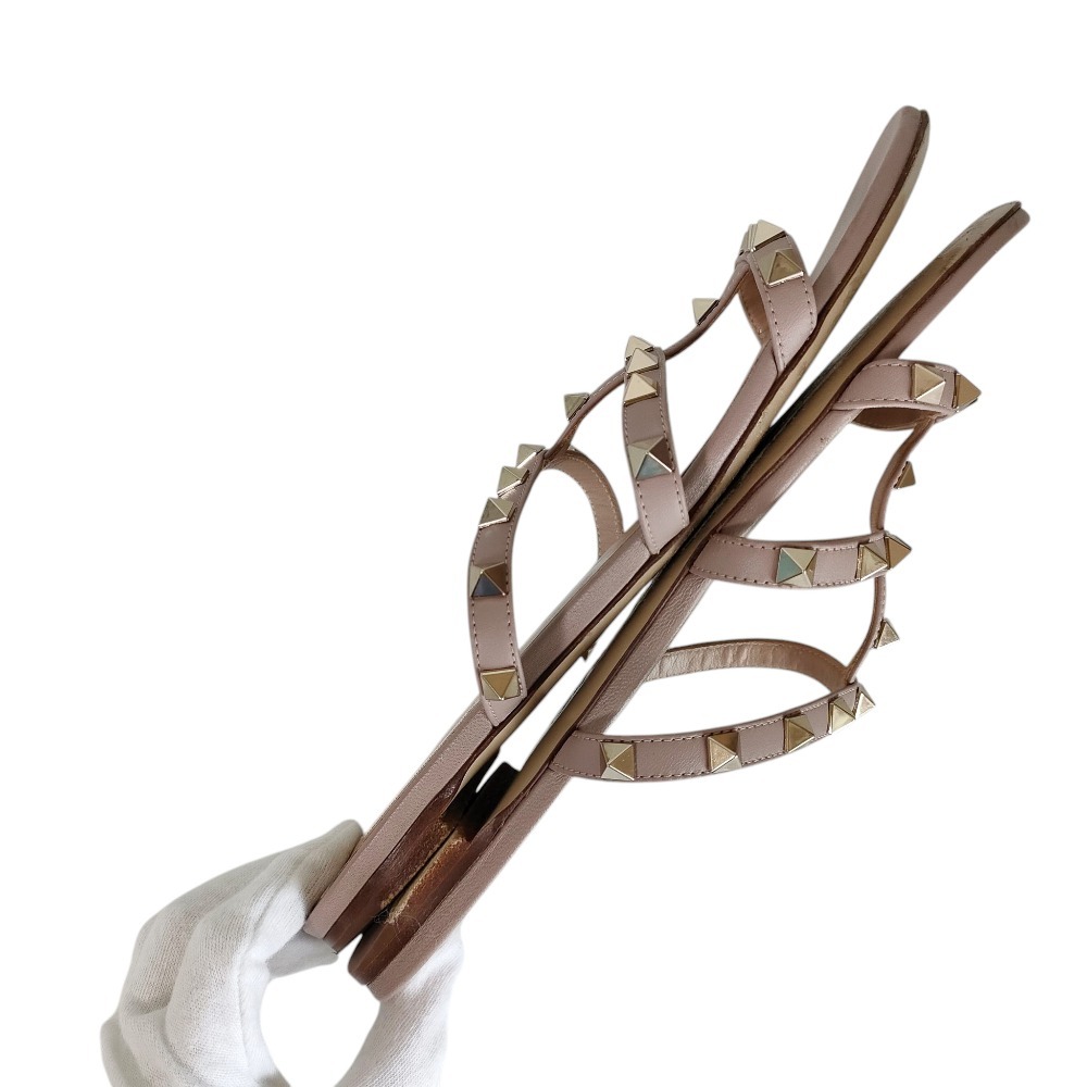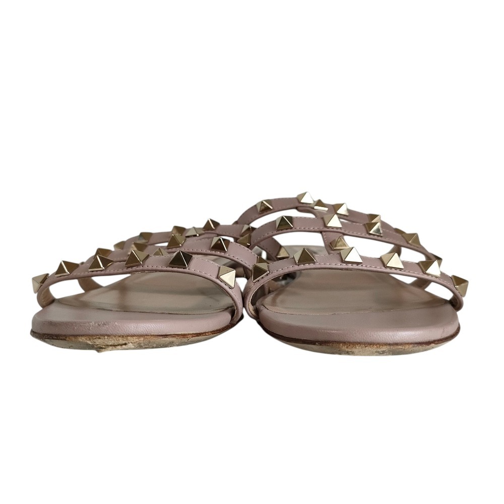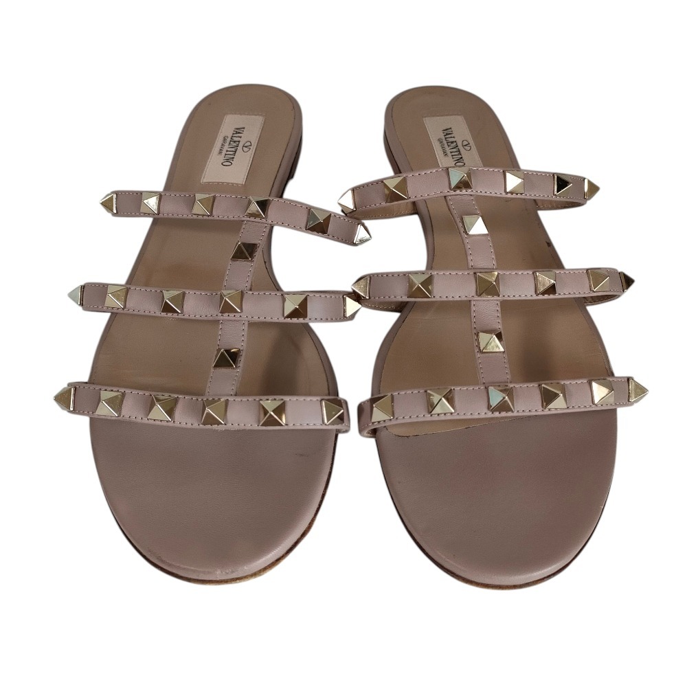 商品名:Valentino Garavani ヴァレンティノガラヴァーニ レザー ロックスタッズ フラットサンダル サイズ38.5 25.5cm相当 ベージュ