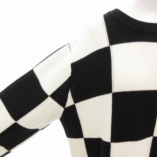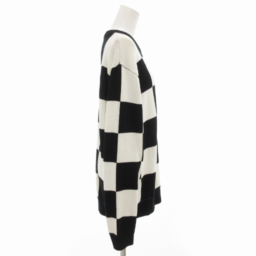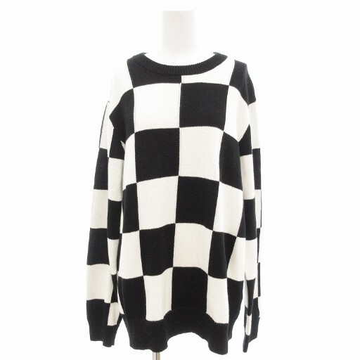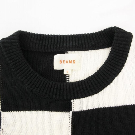 ビームス BEAMS ニット セーター 格子柄 L 白 ホワイト 黒 ブラック /NU ■GY14 メンズ