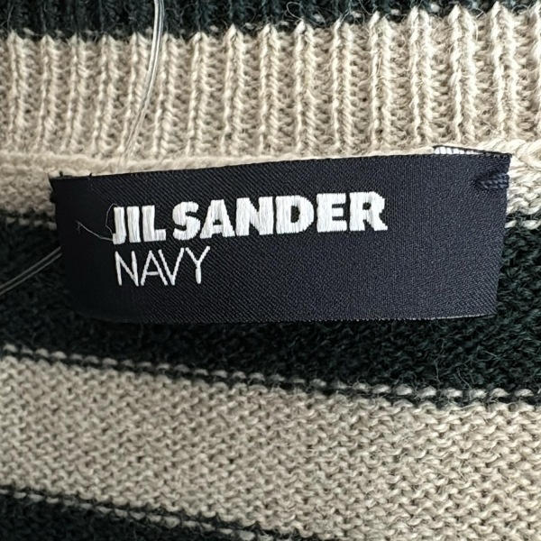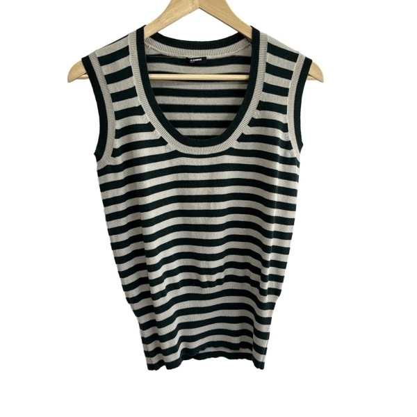 ジルサンダー JILSANDER ノースリーブカットソー サイズM - ベージュ×ダークグリーン レディース ボーダー 美品 トップス