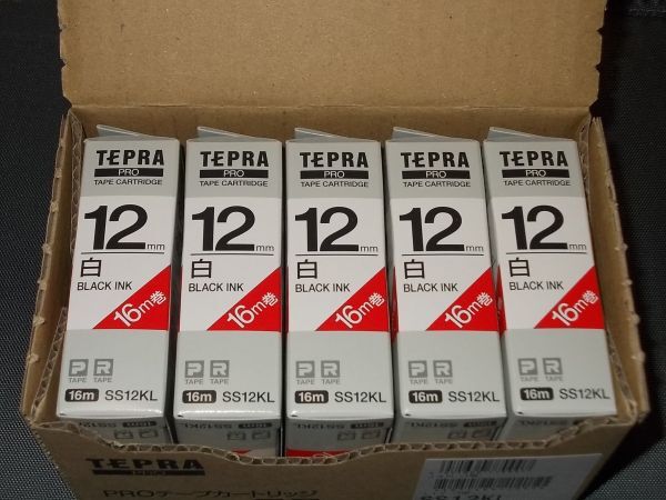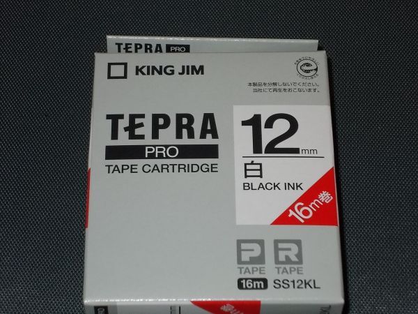 新品・未開封PRO用テープ12mm幅・SS12KL白ラベル黒文字(ロングタイプ)の出品です。