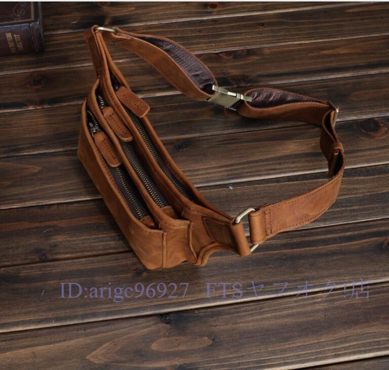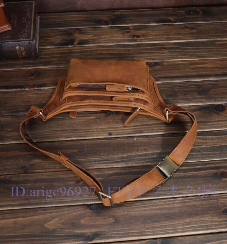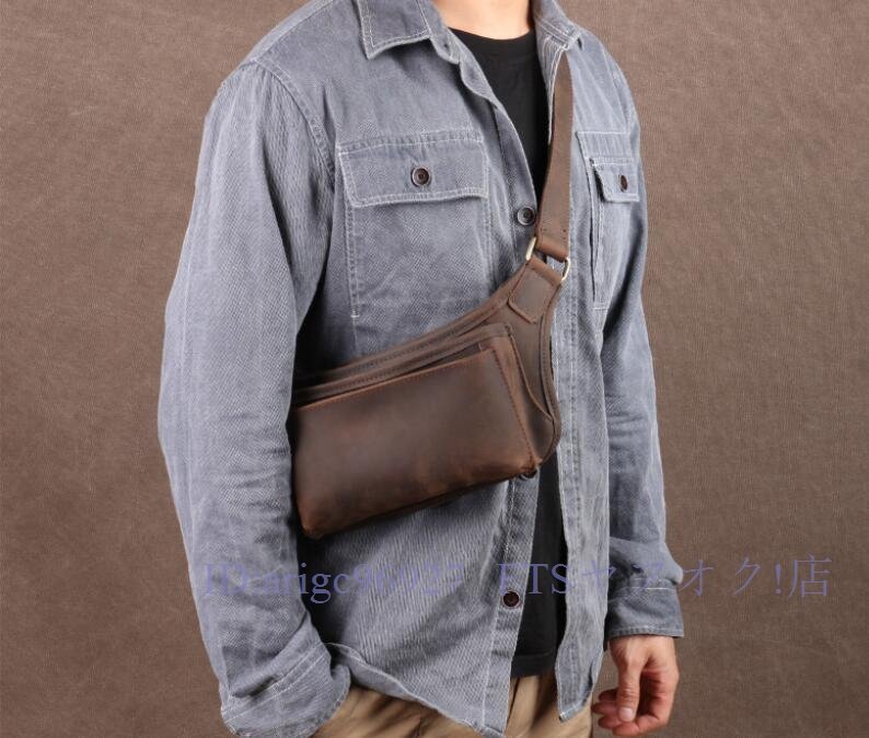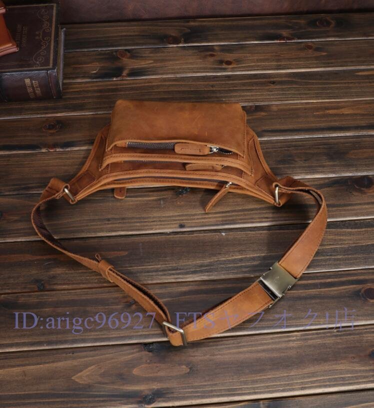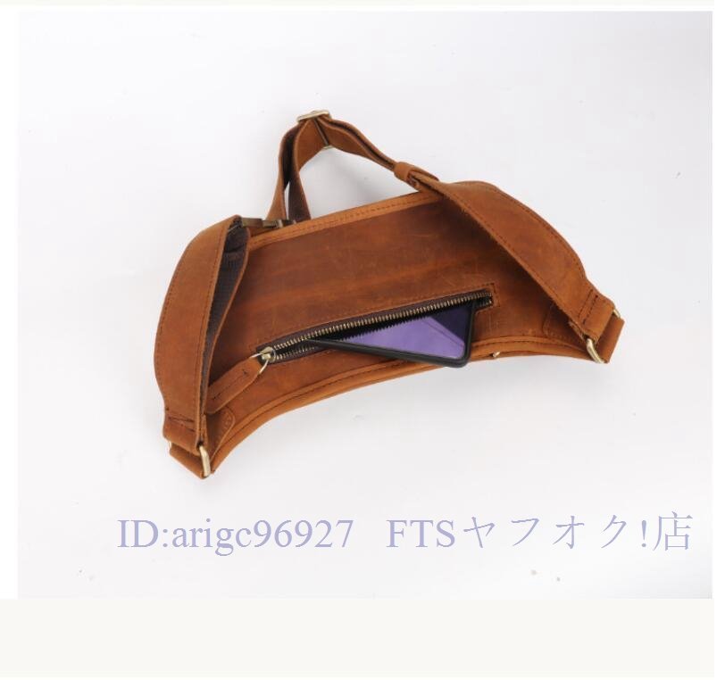 A7292 ショルダーバッグ 斜めがけ ウエストバッグ レザー バッグ高級 ボディーバッグ 本革 牛革 ワンショルダー 鞄 カバン ブラウン